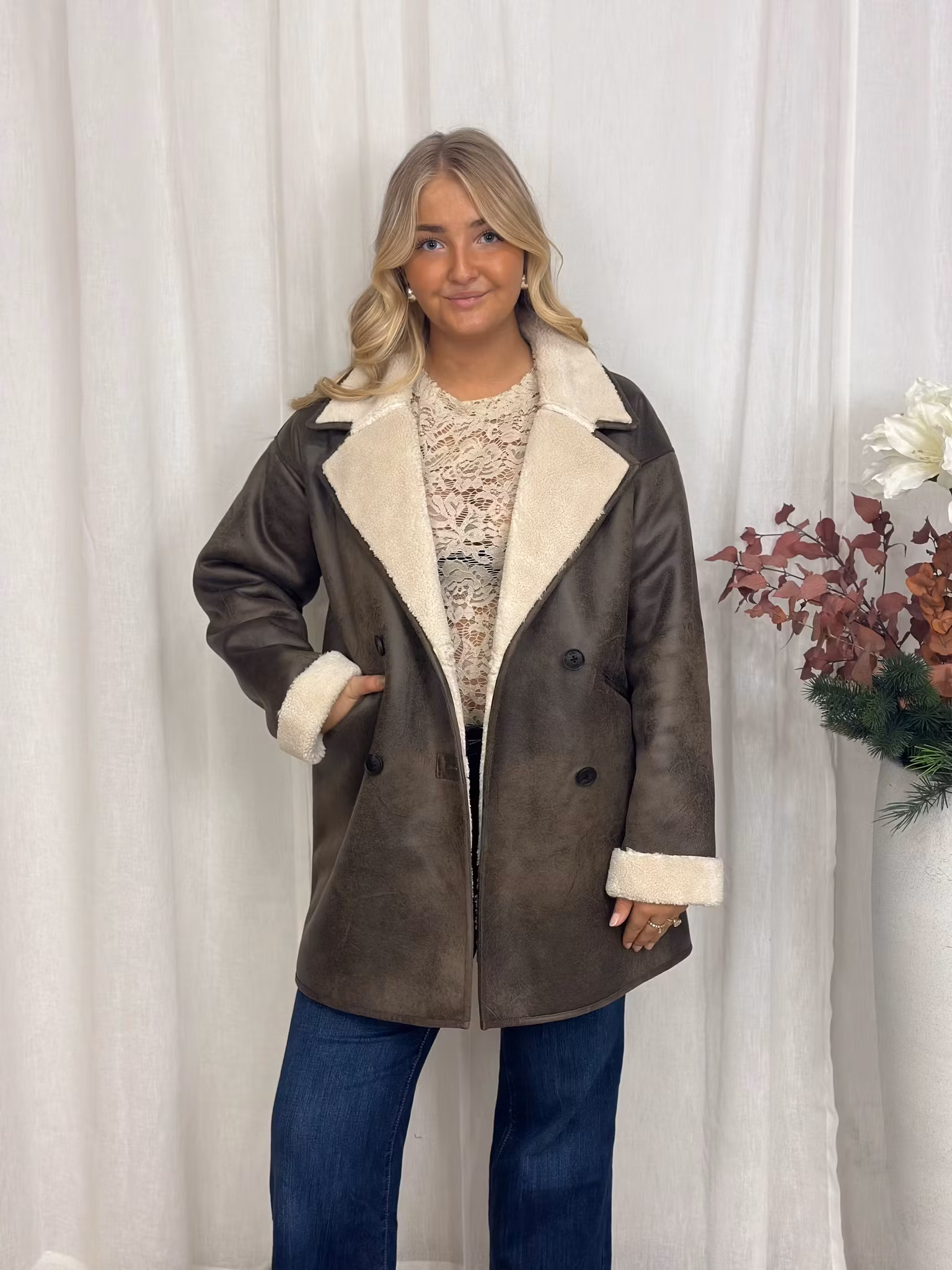 Brun jacka med teddy foder jjxx