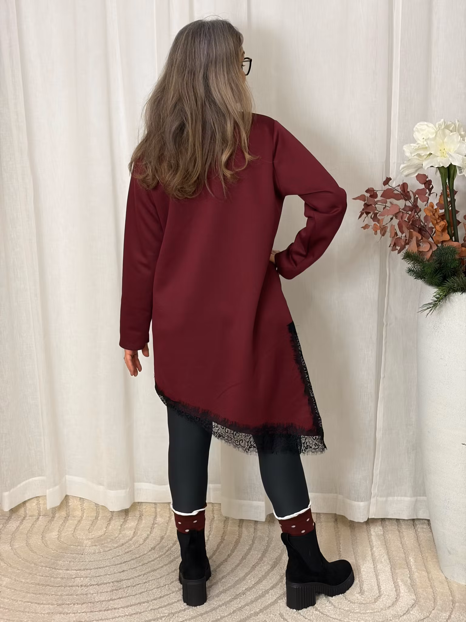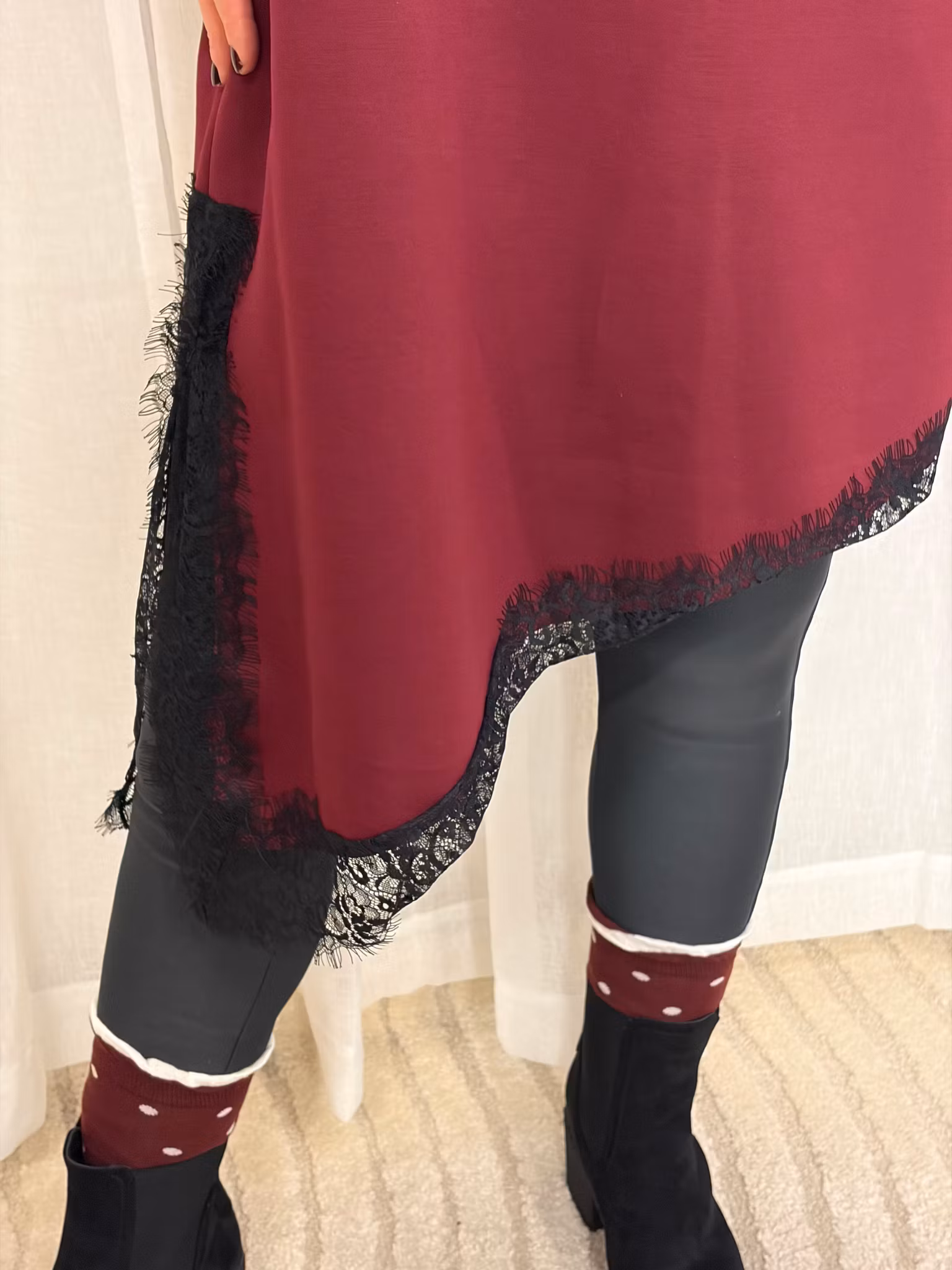 trendig modell med snedskuren och spets nertill