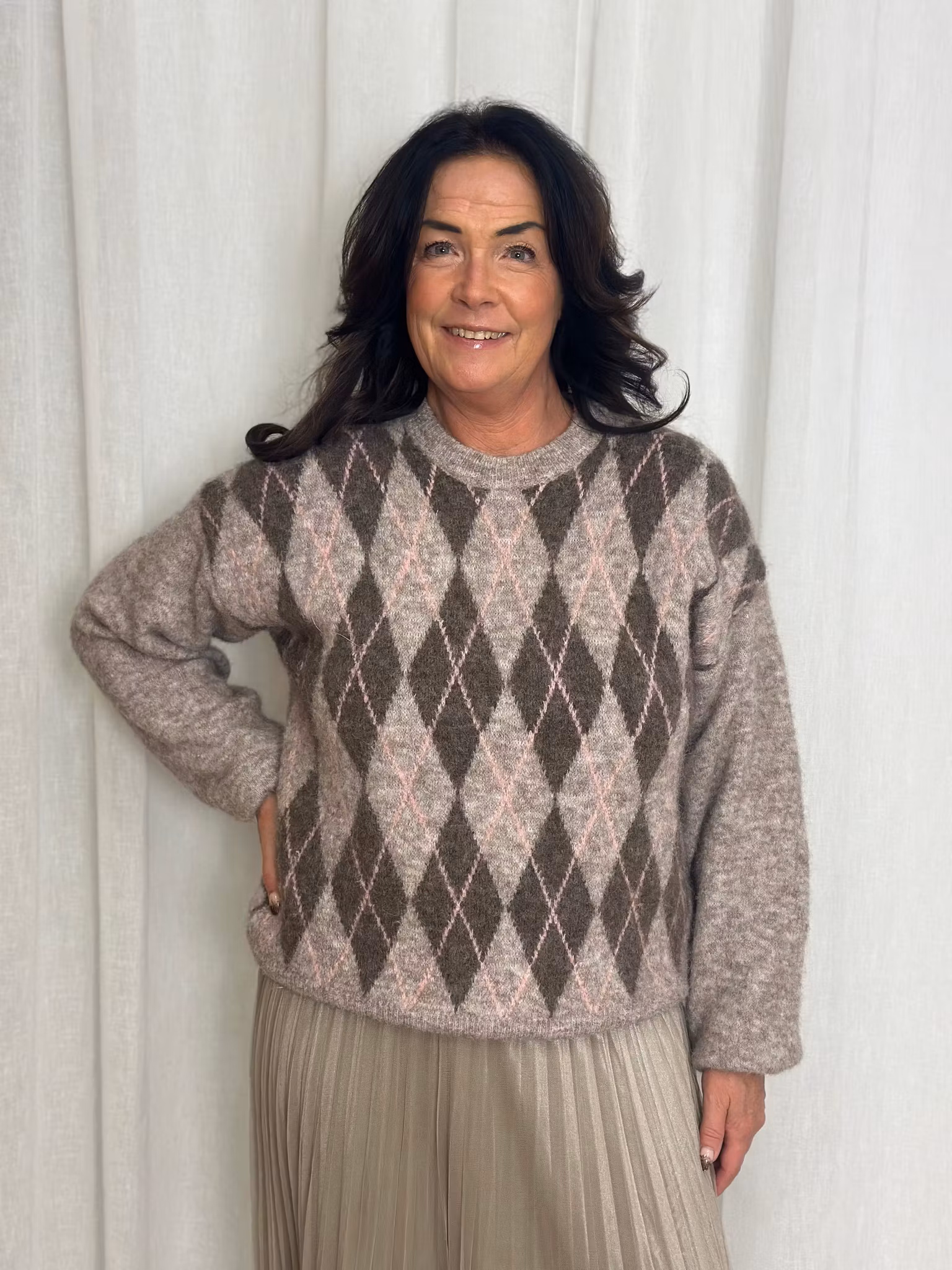 Tröjan har ett snyggt rutigt mönster. Mjuk och skön.