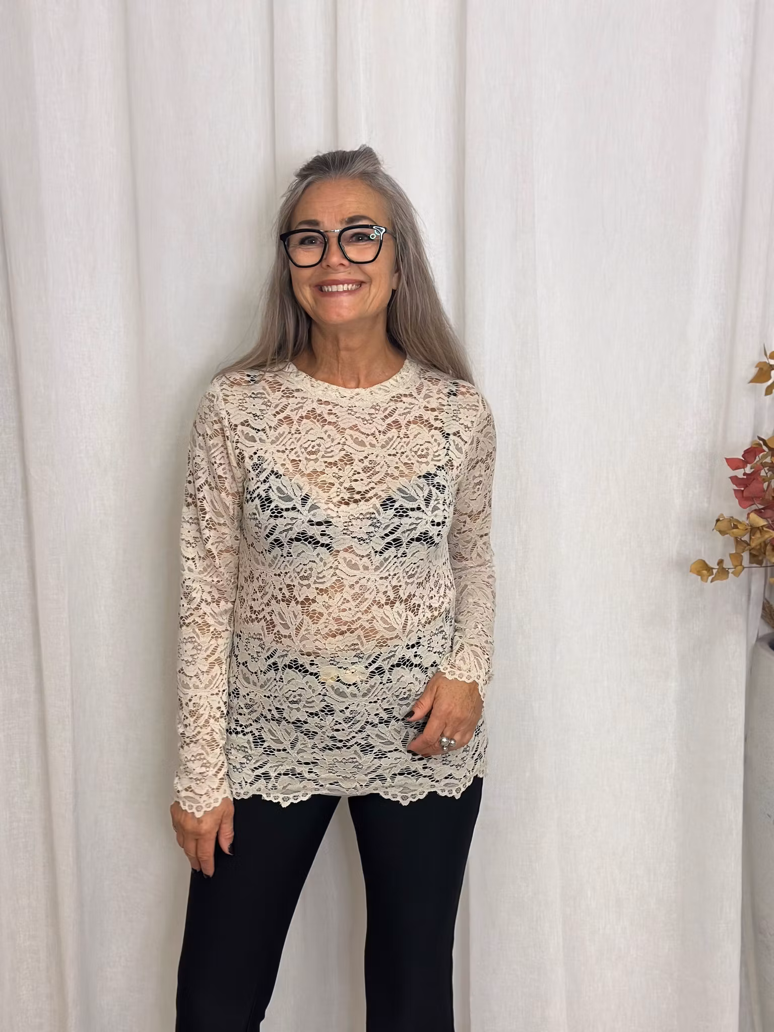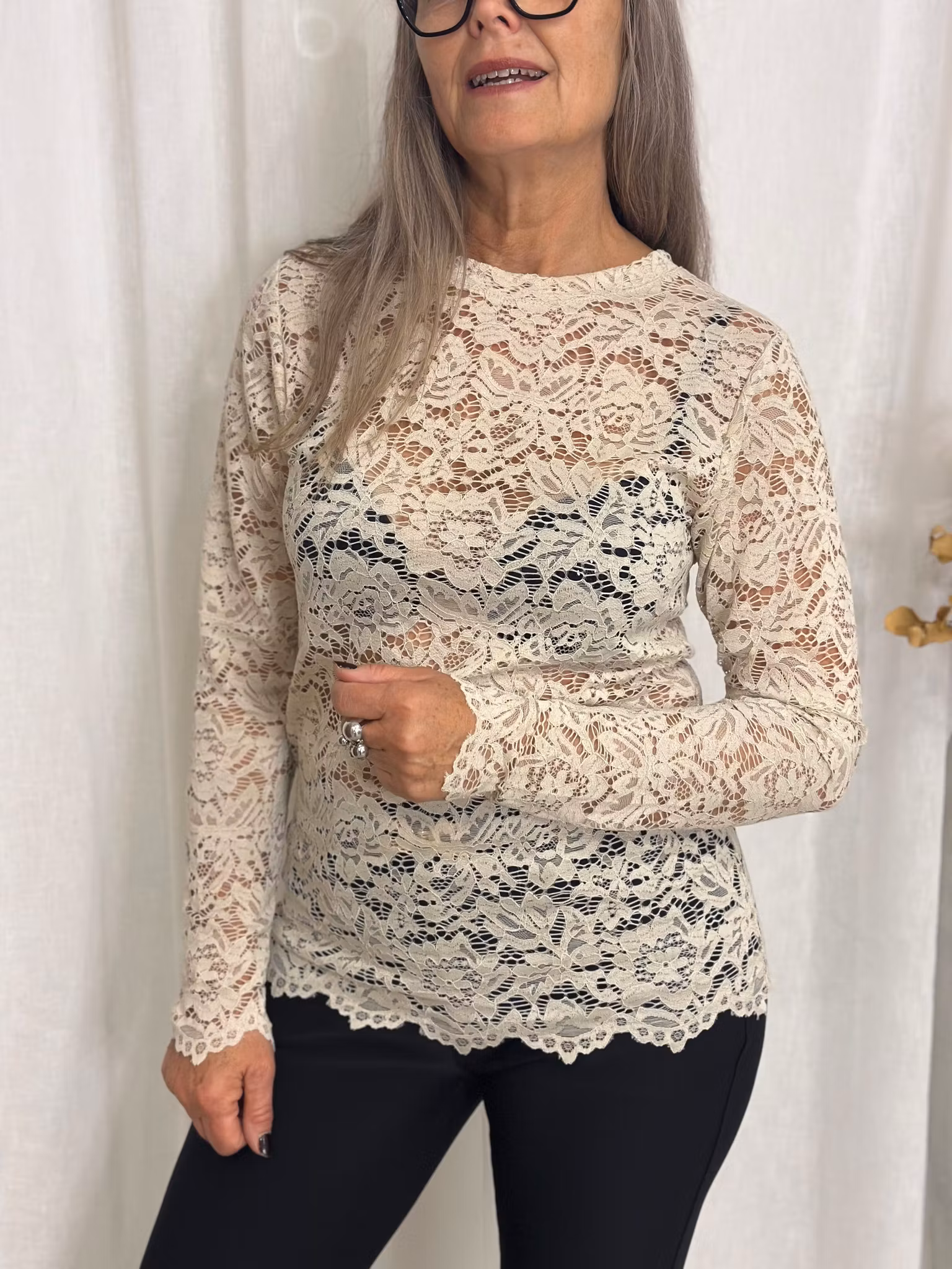 Elegant långärmad spetsblus från Marta du Château. Blusen har långa ärmar och rund hals. Styla den med en kjol eller ett par byxor för en sofistikerad look.