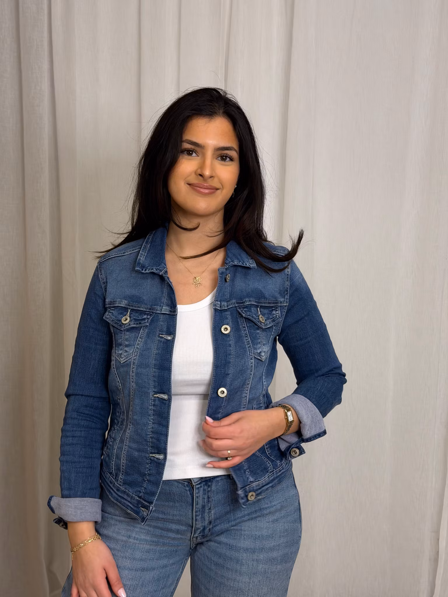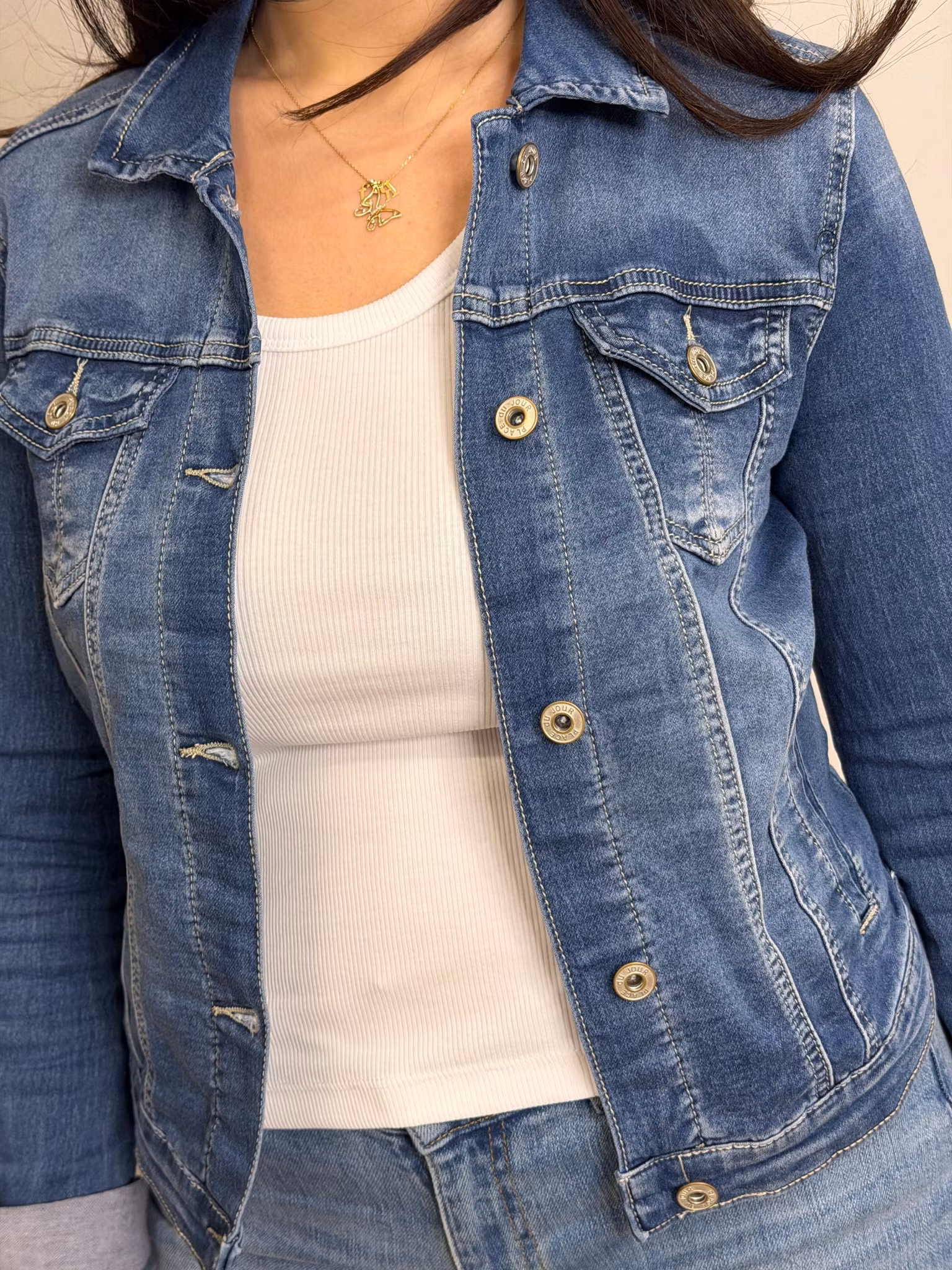 jeansjackan ska bäras öppen. perfekt till klänningen eller ett linne /top