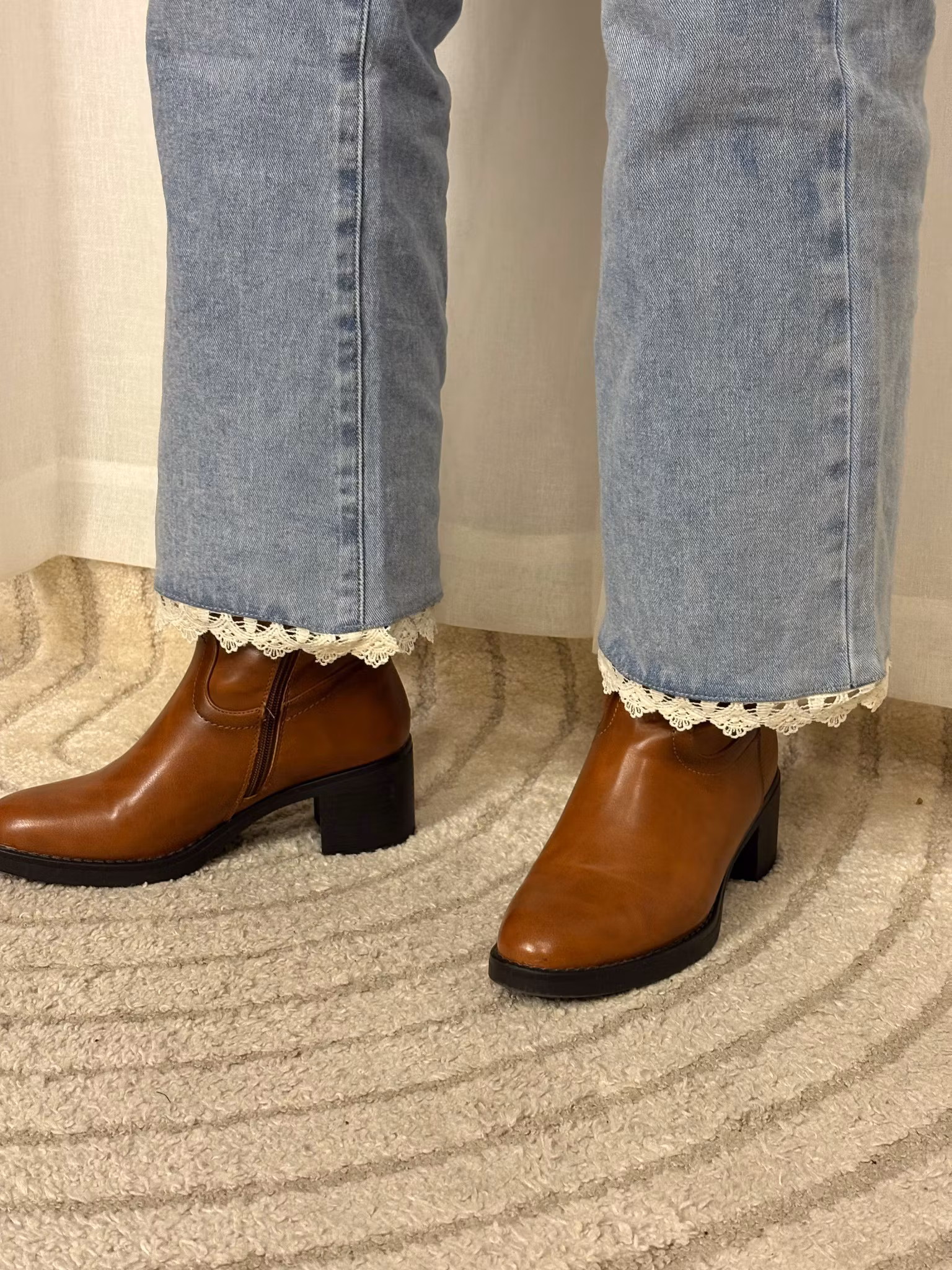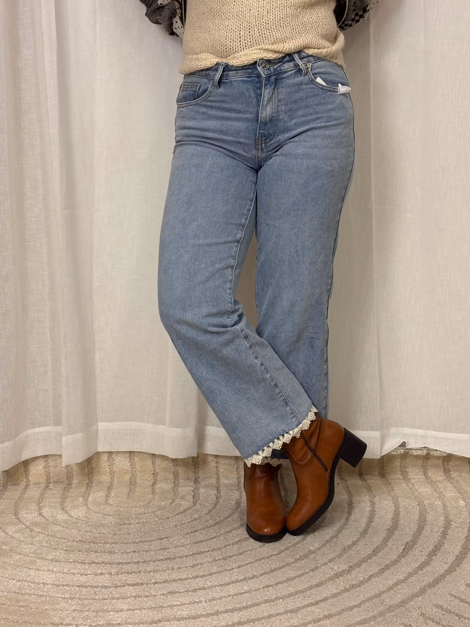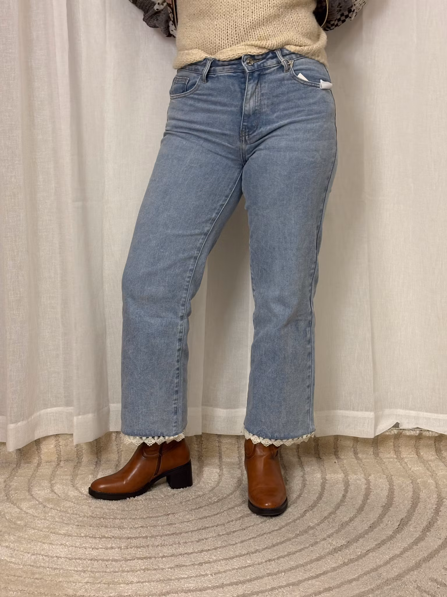 Snygga jeans i härligt stretchigt materia med spets längs benen!