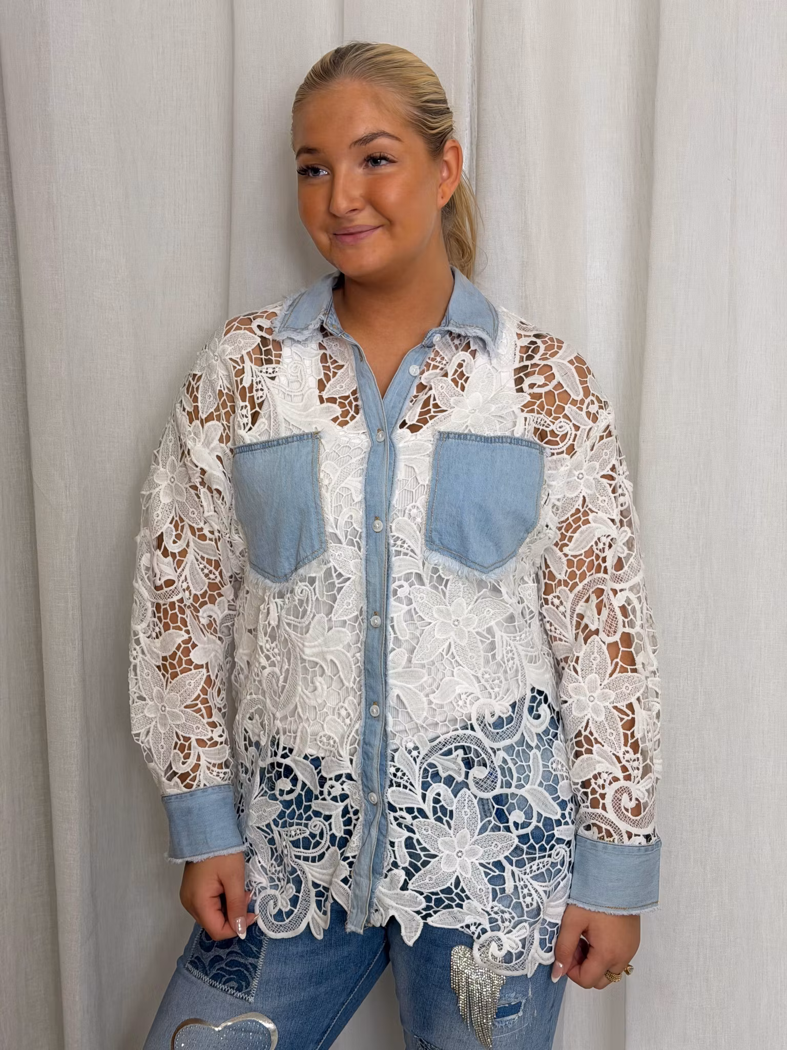Ljuvlig spets jeans skjorta