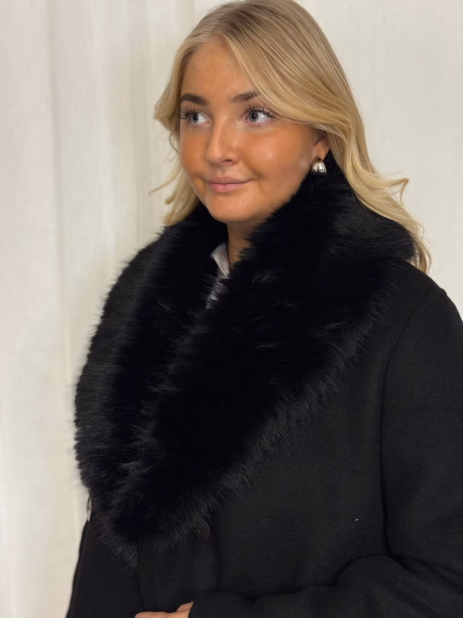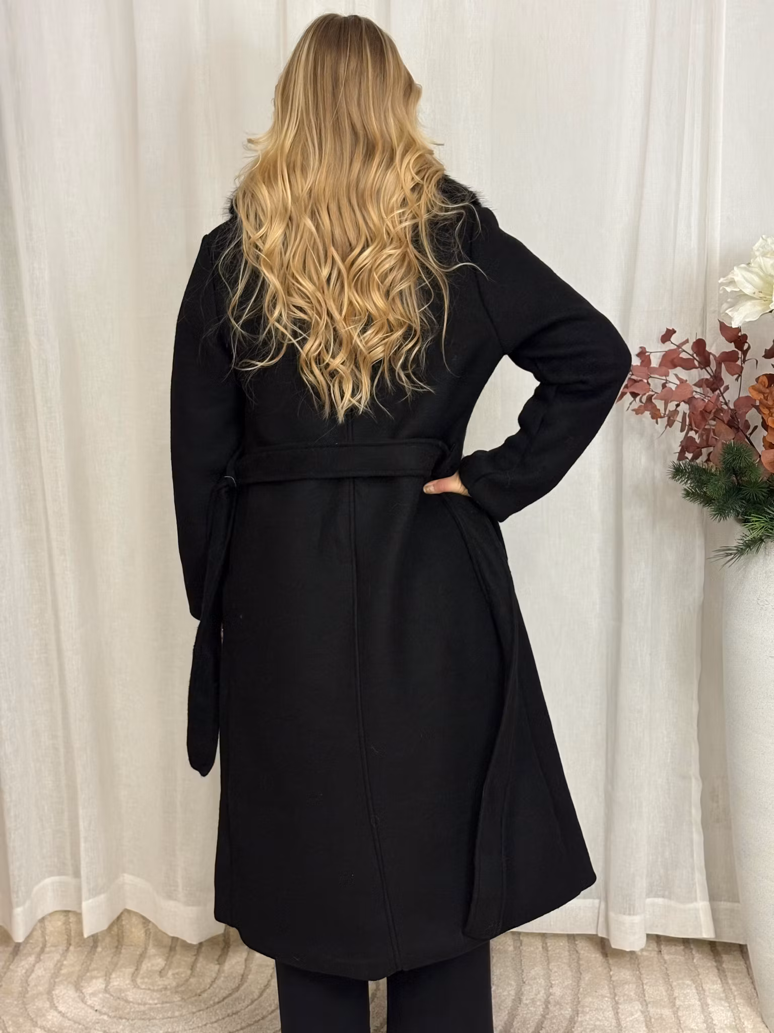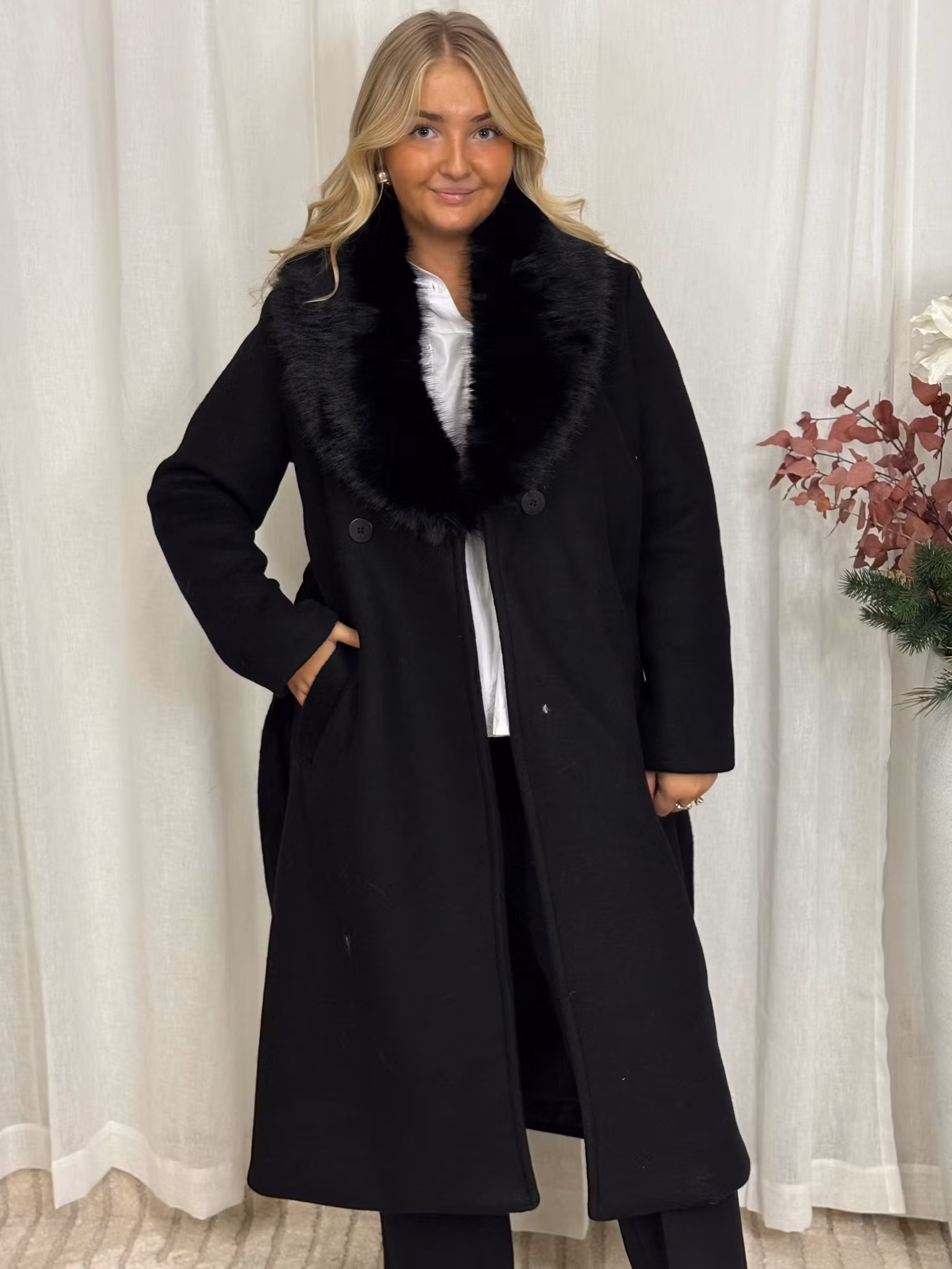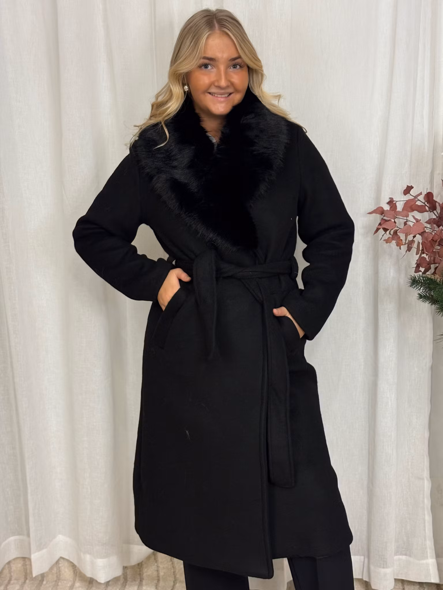Lång kappa med päls detalj i kragen