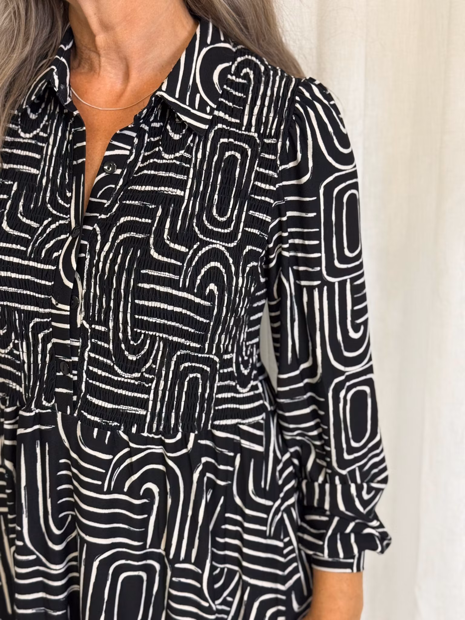 Snygg klänning med smock och knappar vid bysten
