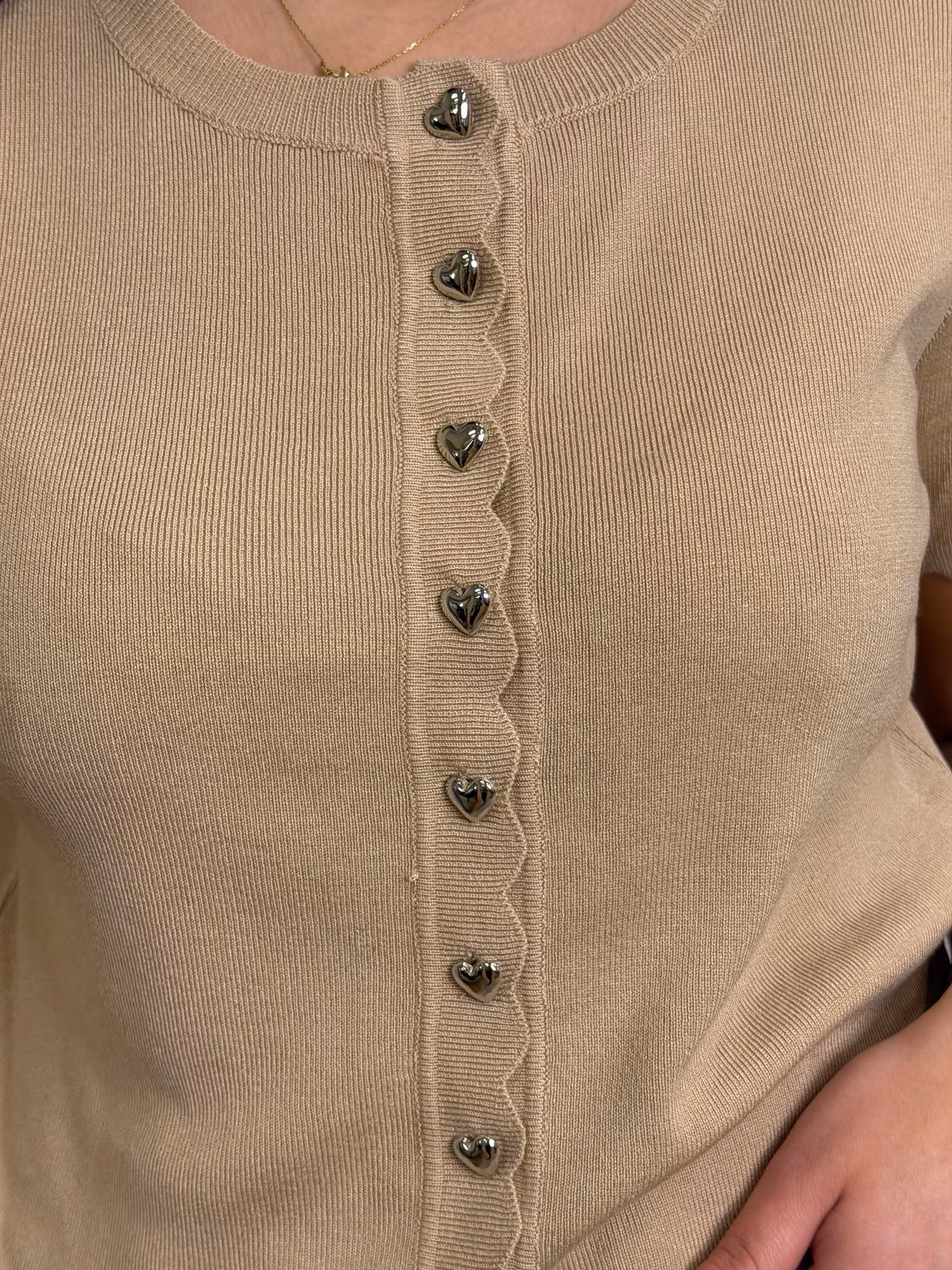 Fina hjärformade knappar i silverfärg.