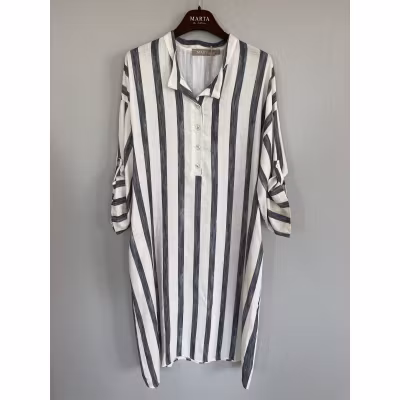 Linneklänning vit/marin randig ERNA