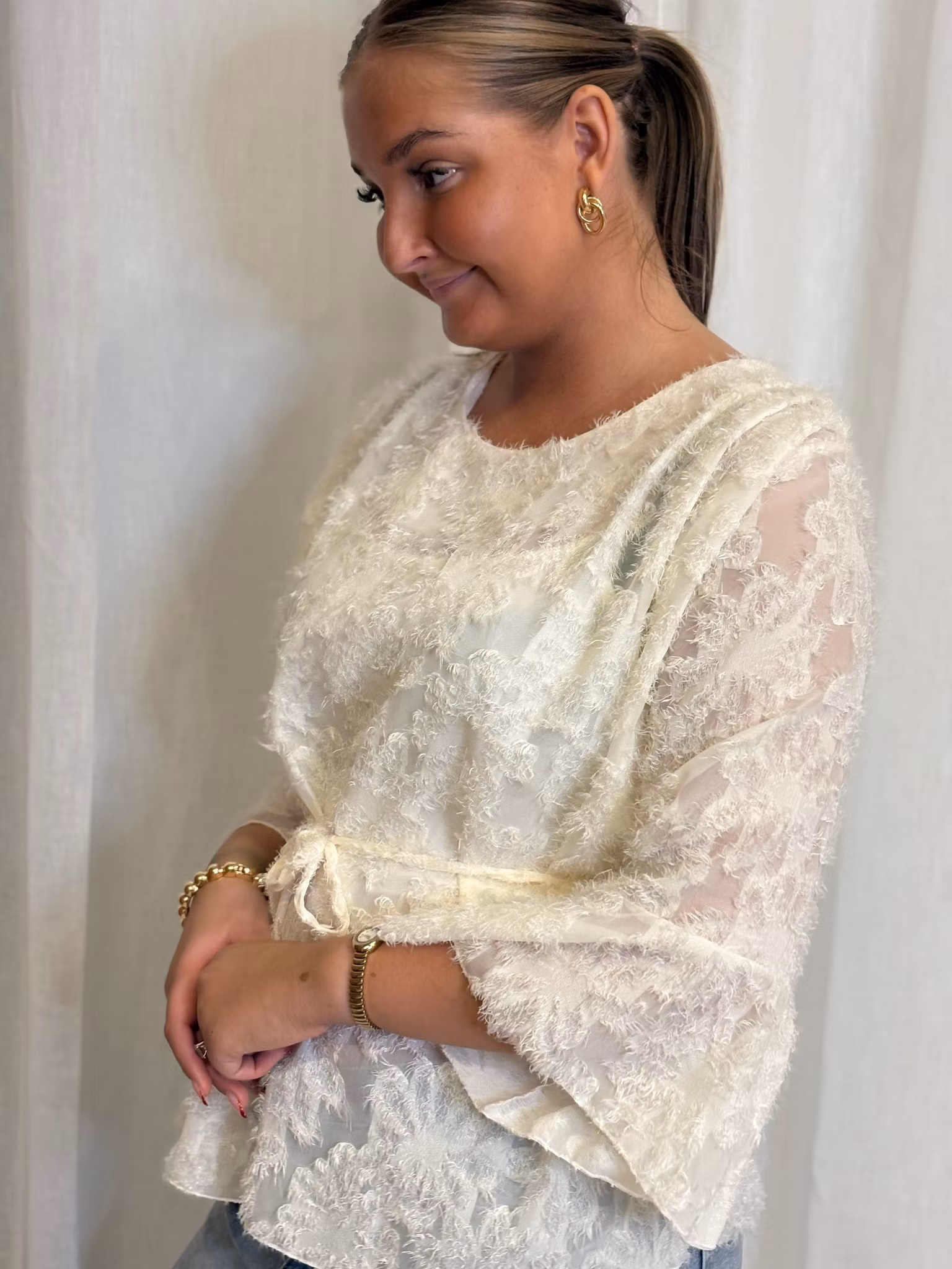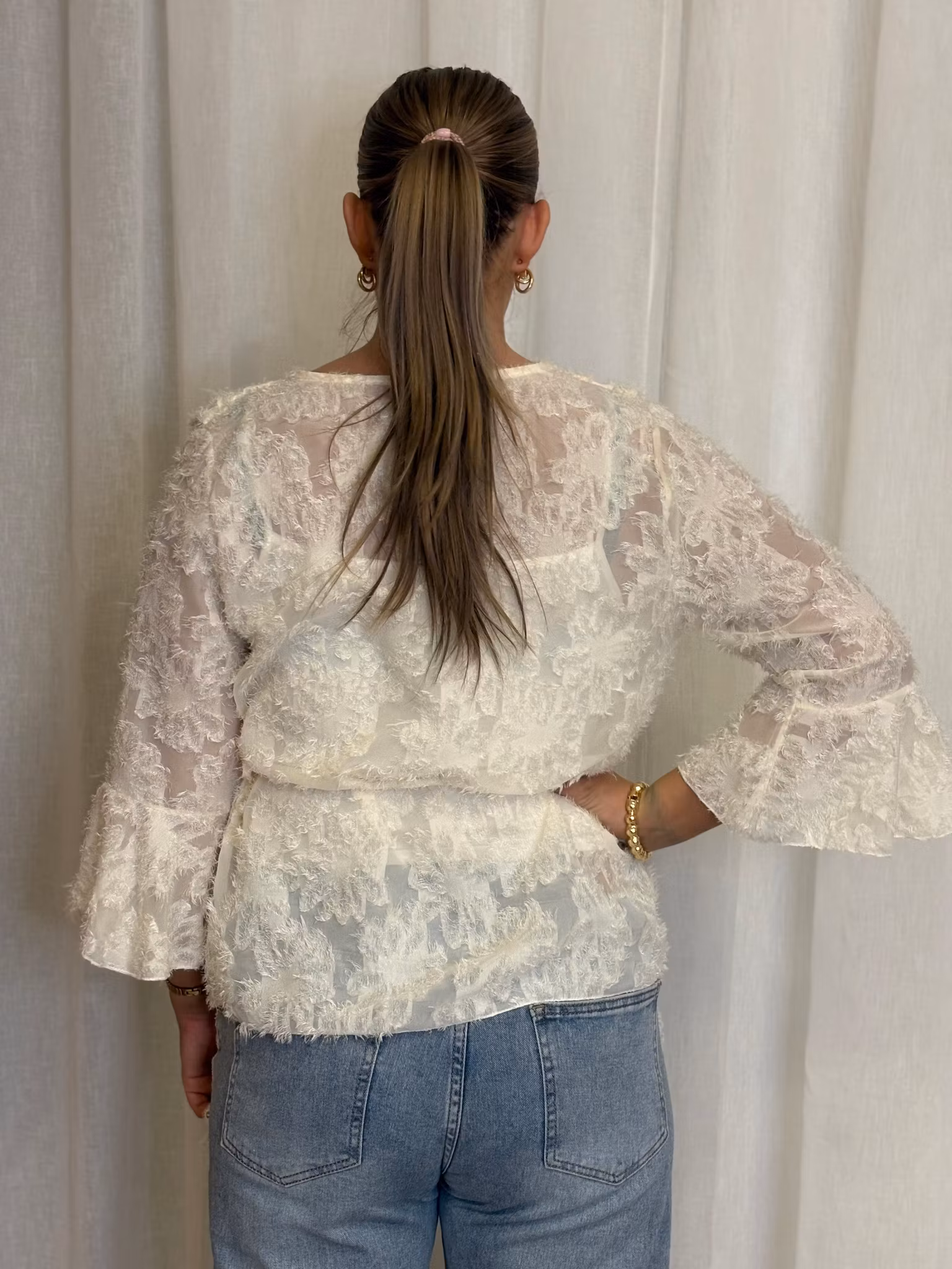 Trekvartsärm med volang detalj