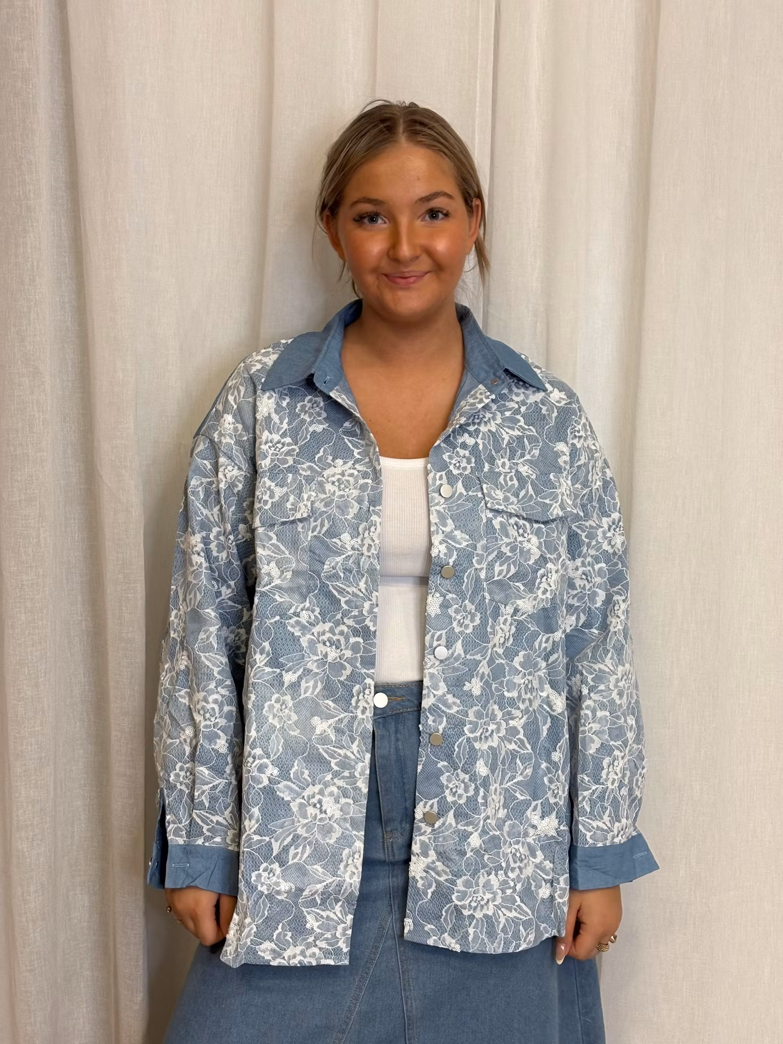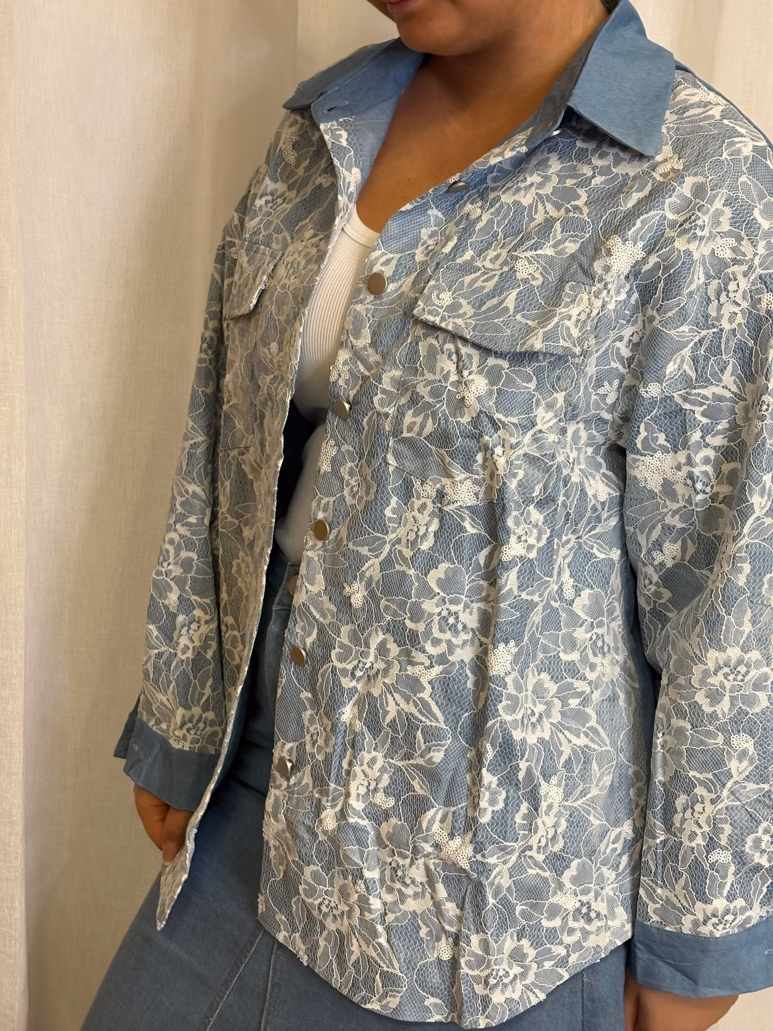 Jeansjacka med spets detalj