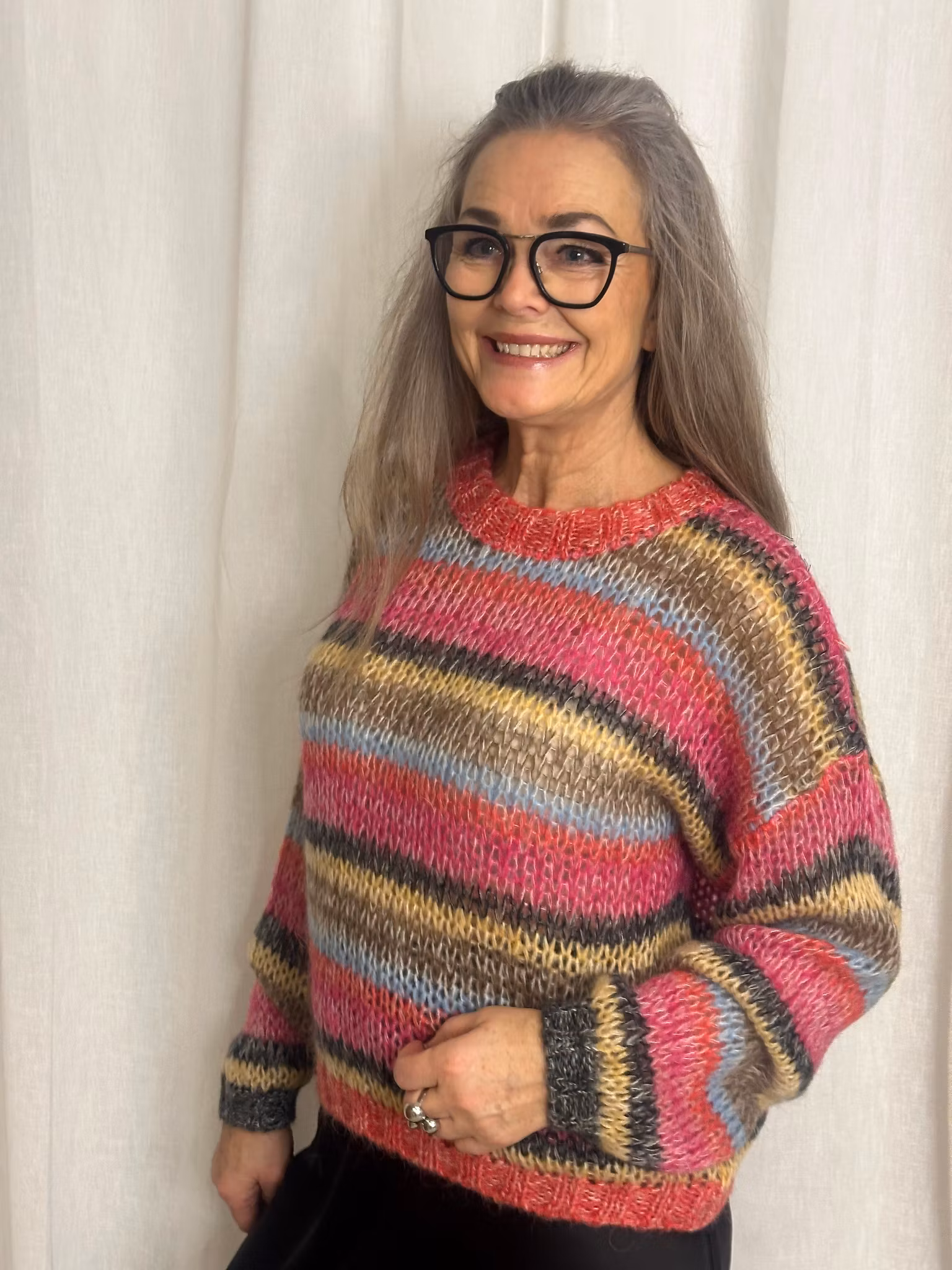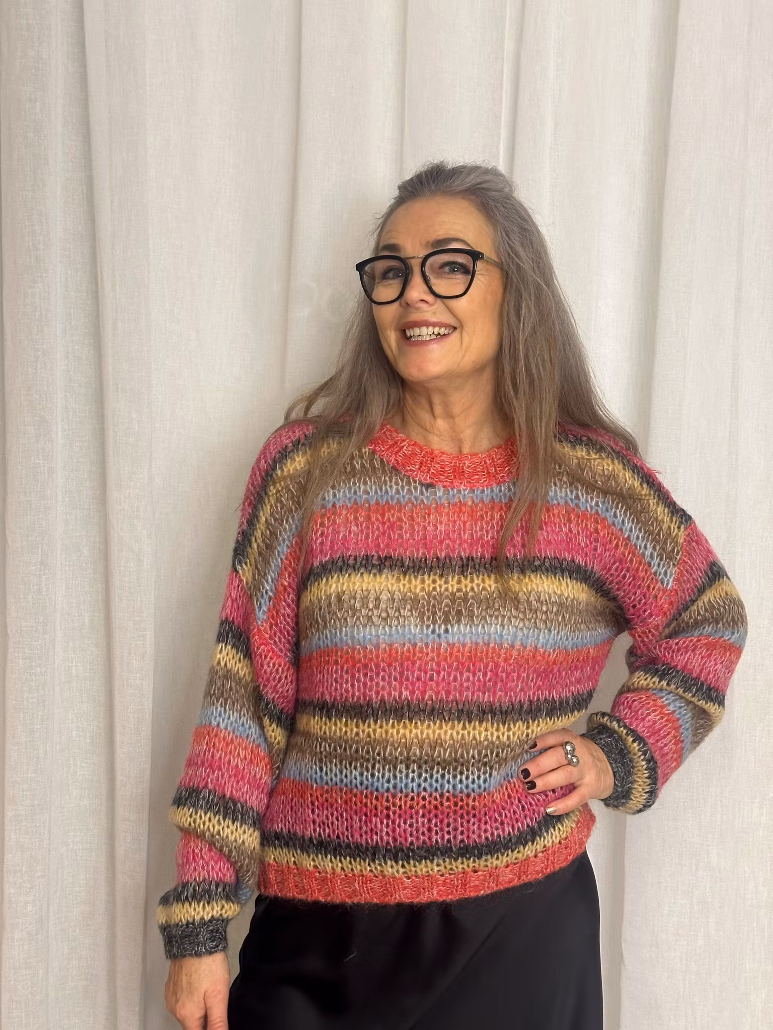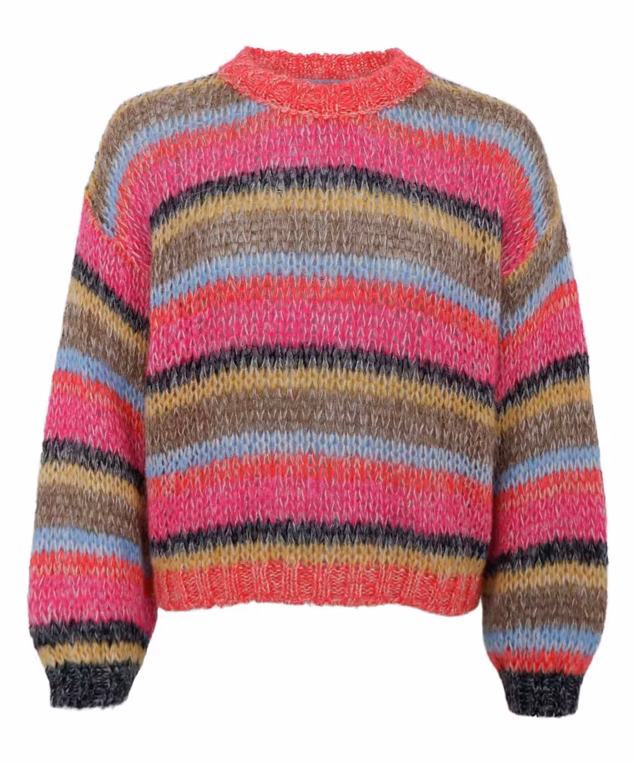 Milly är en fin randig stickad tröja från Black Colour. Tröjan har rund halsringning, långa ärmar och en rak passform.
