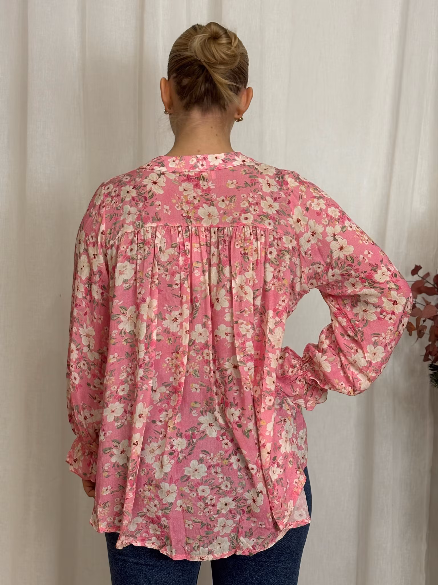 Rosa blus med blomprint