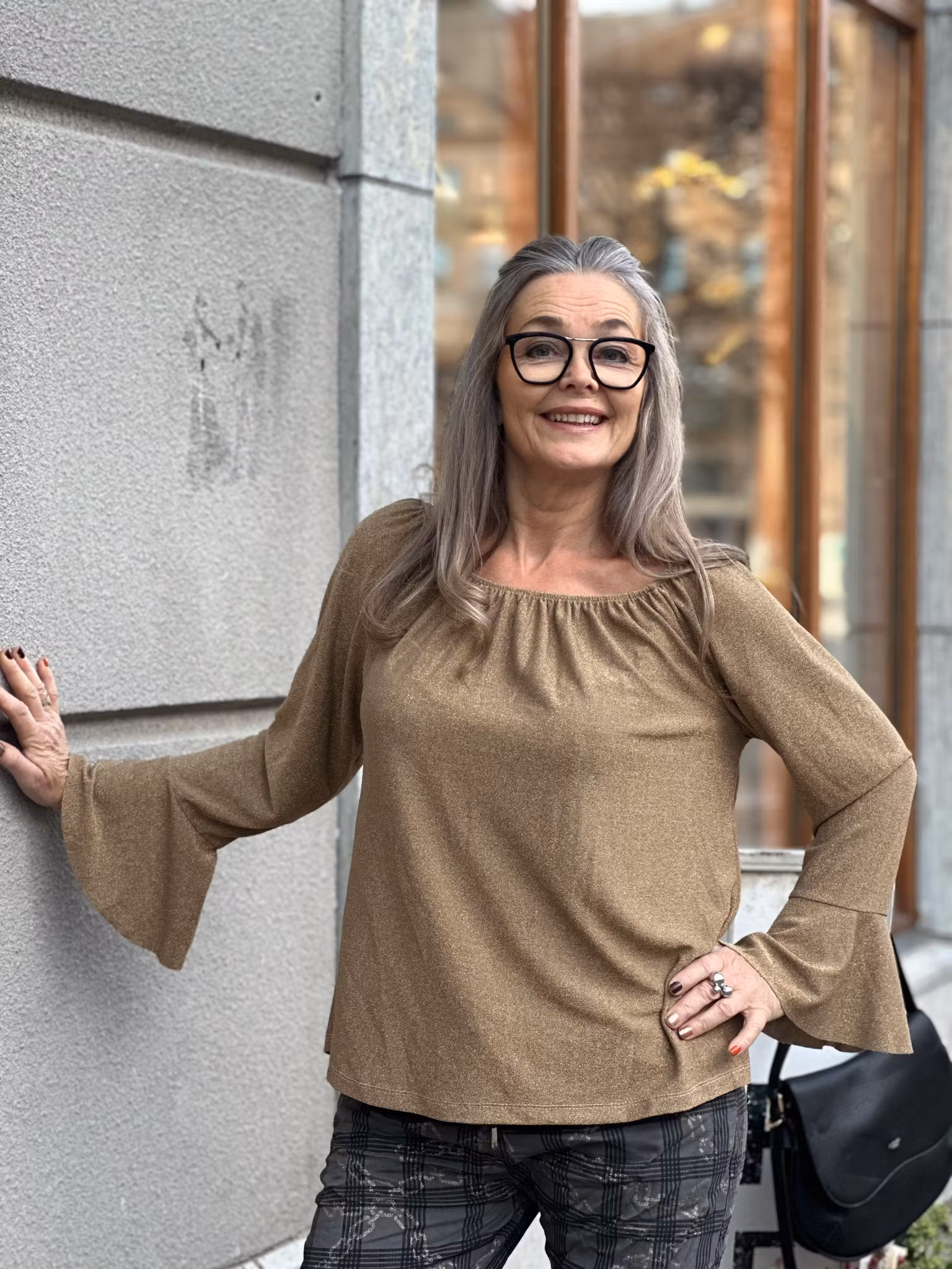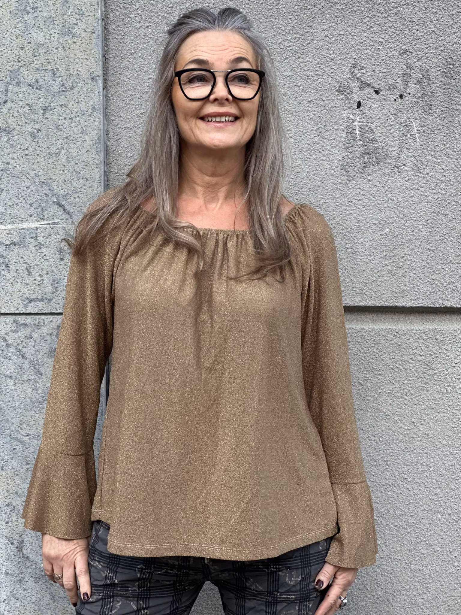 Stretchig Top med volang ärm