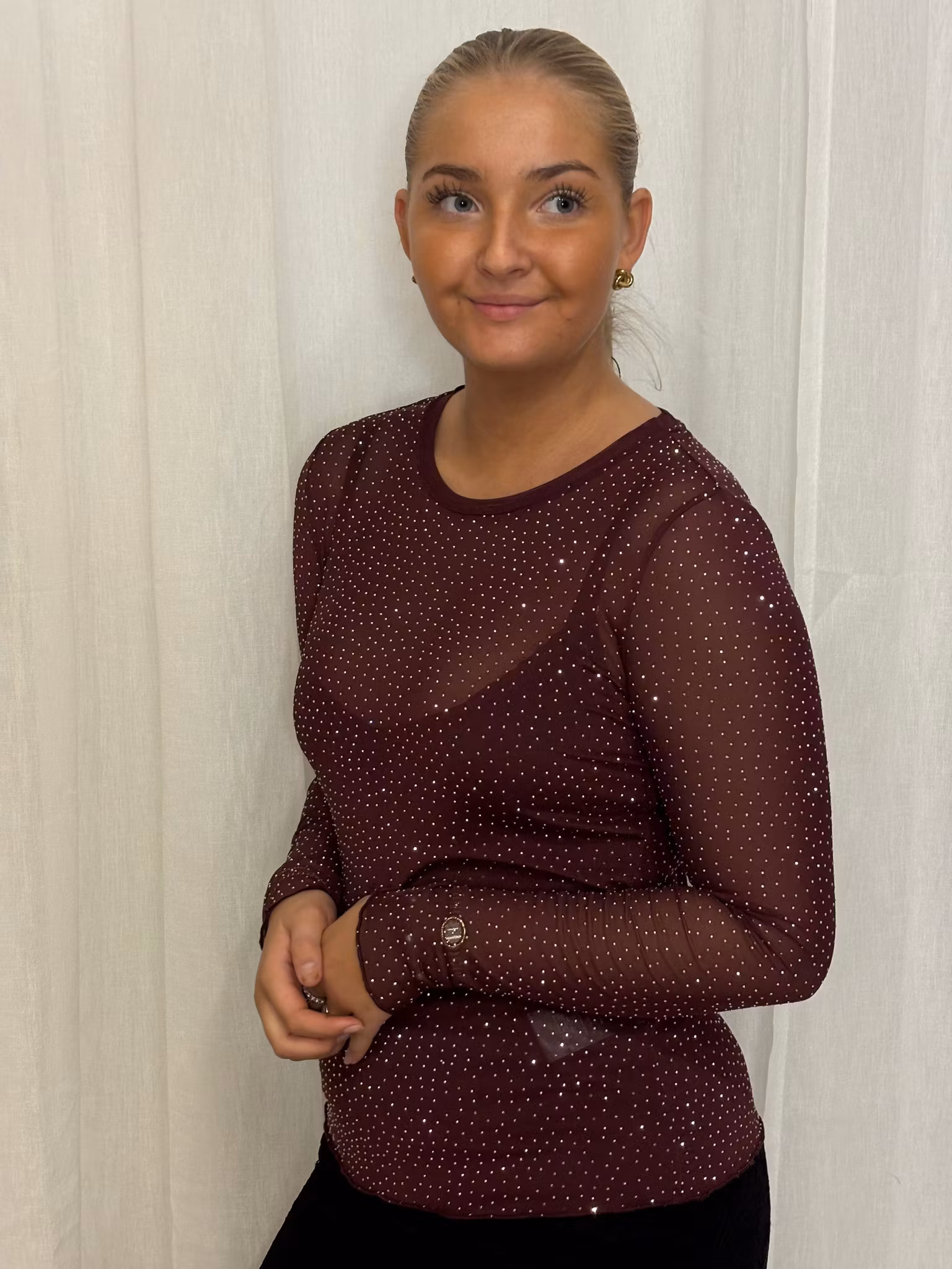 Strass topp i vinröd