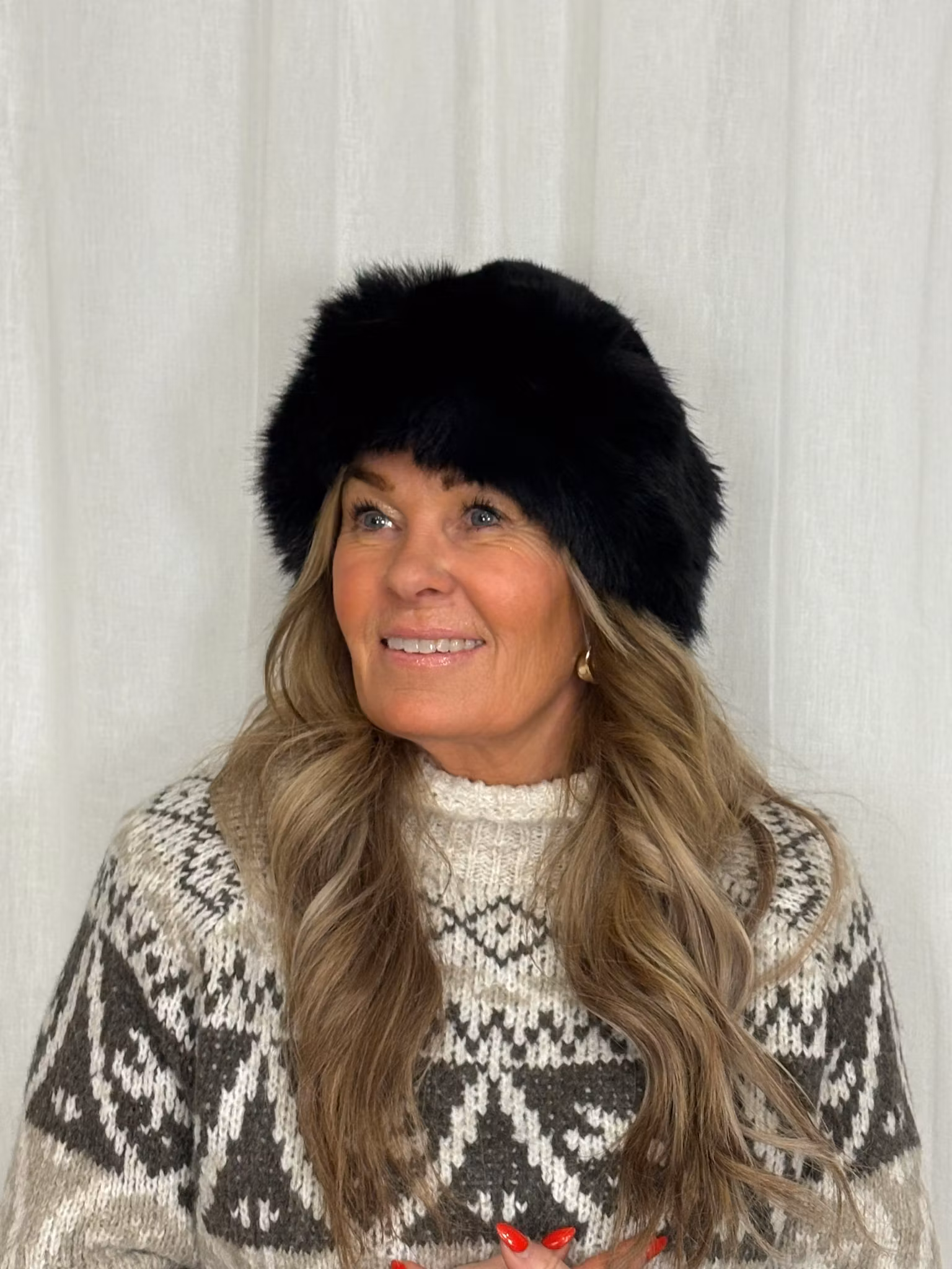 Huvudbonad i päls imitation