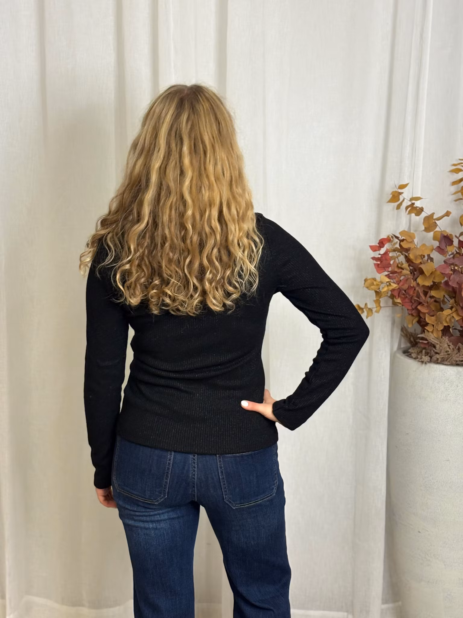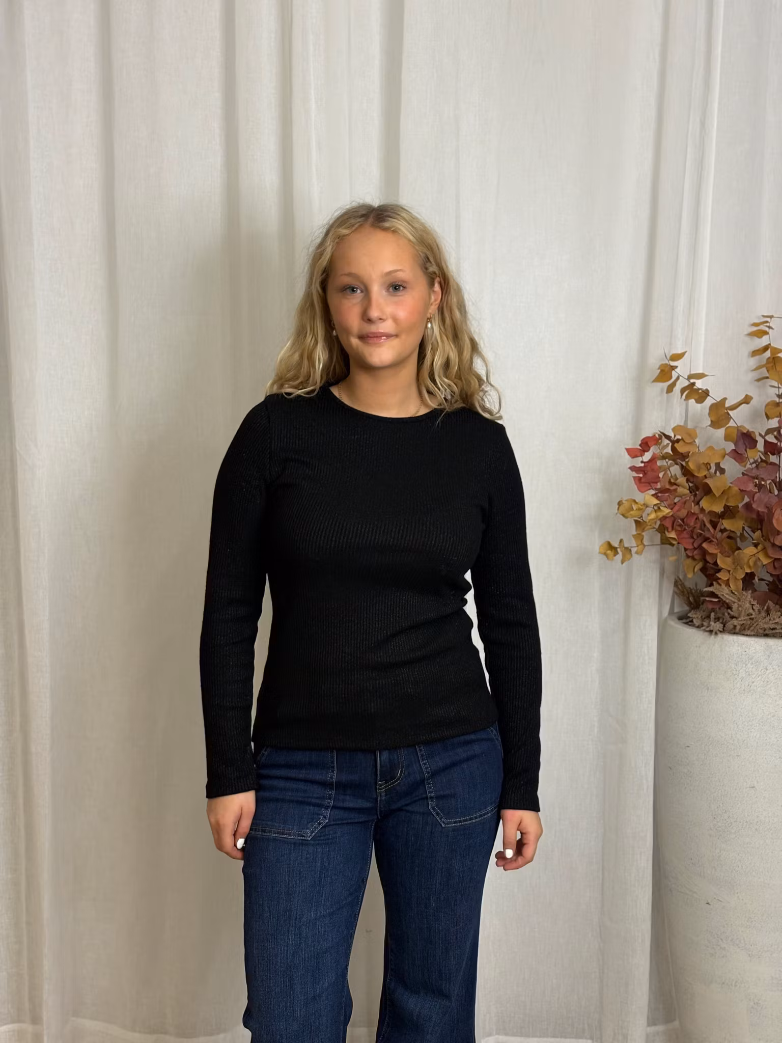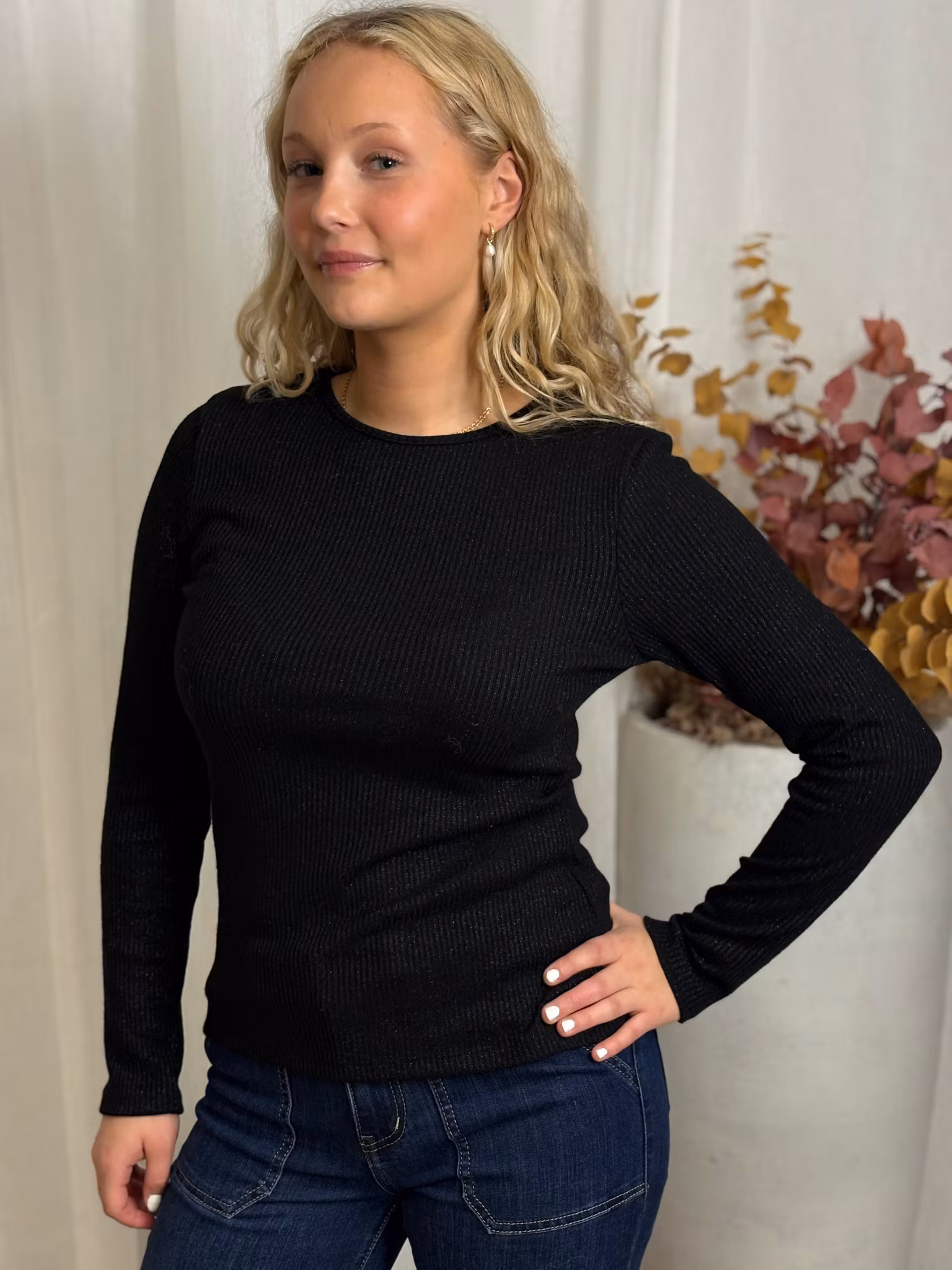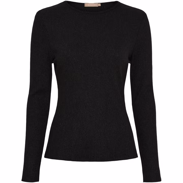 Fin bas långärmad blus från Marta du Château med glitter. Den fungerar perfekt både ensam och som en del av en lager-på-lager-look. Blusen är tillverkad i en härlig ribbad kvalitet, vilket garanterar komfort och stil.