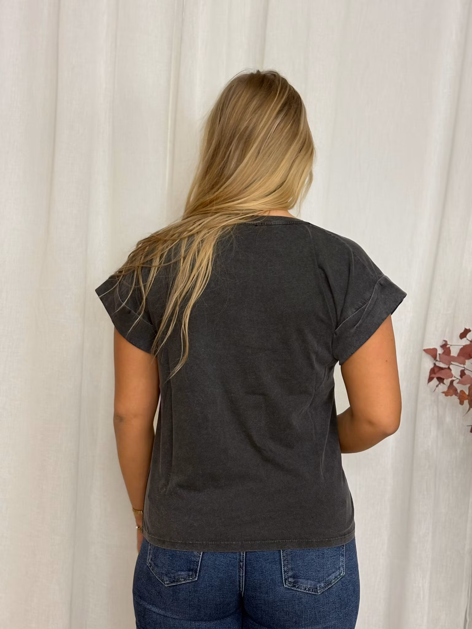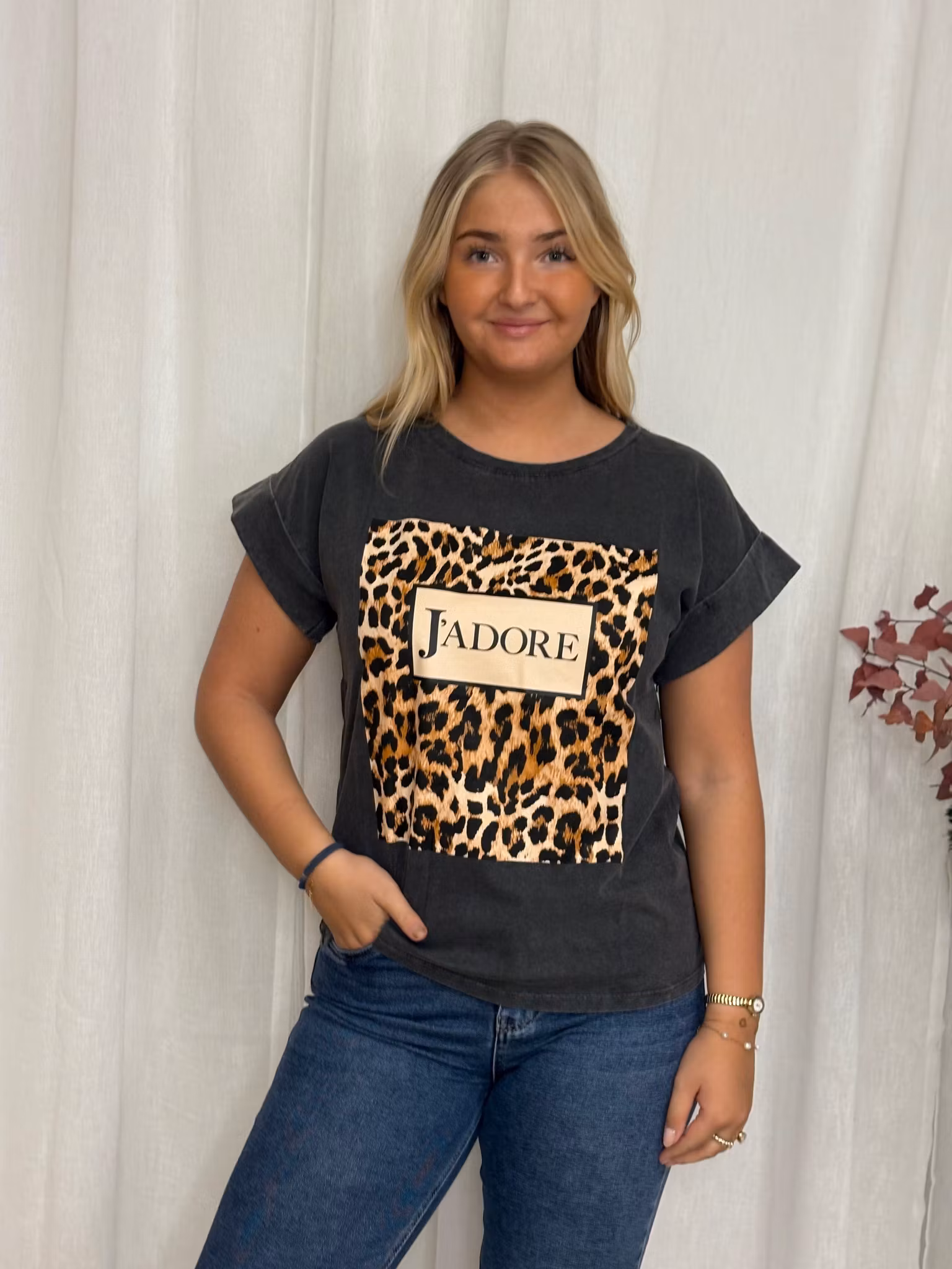 T-shirt i tvättad grå färg med leopard print på
