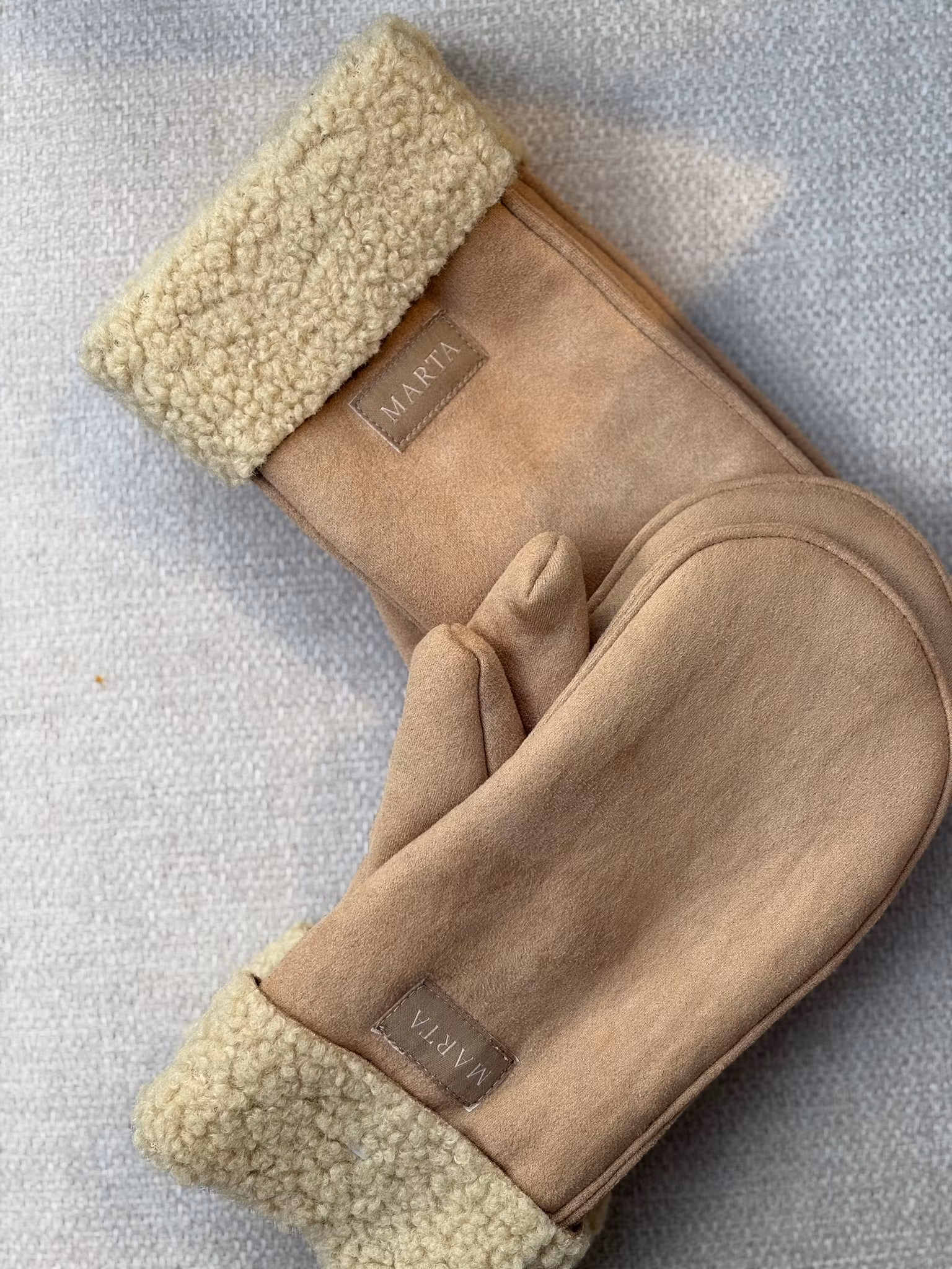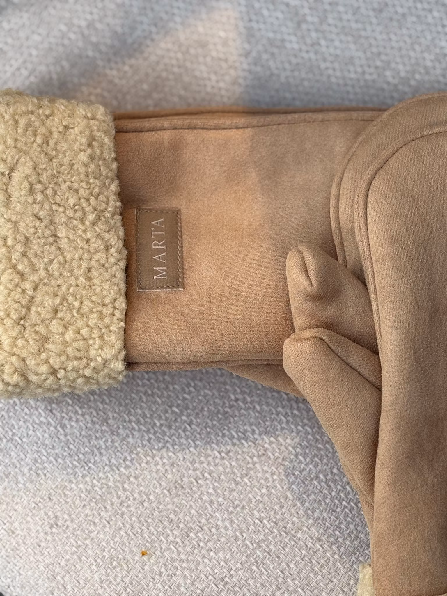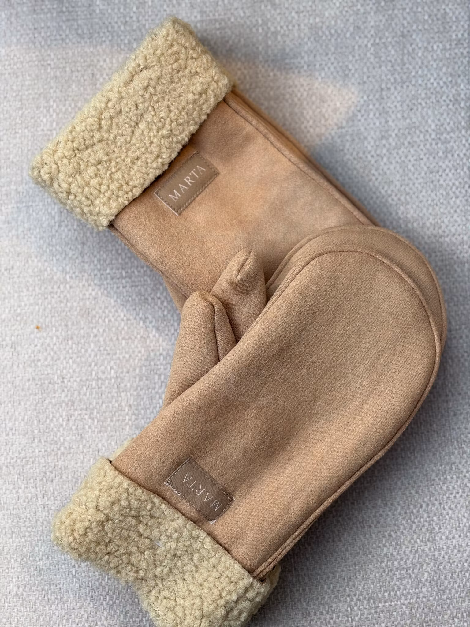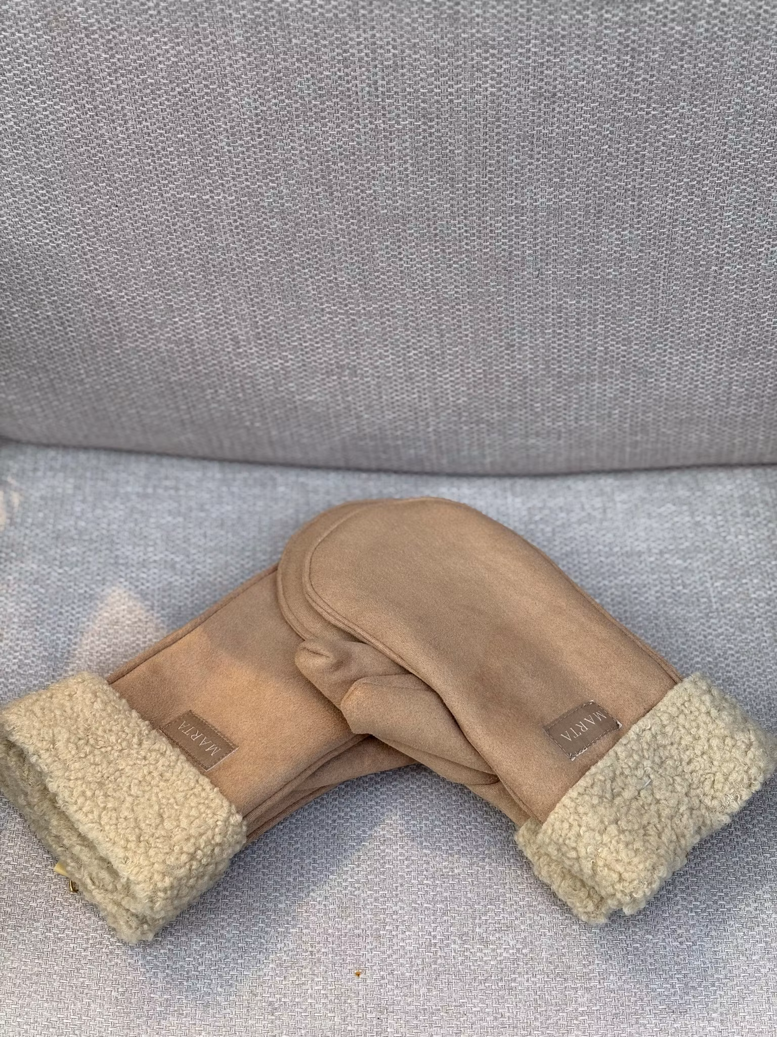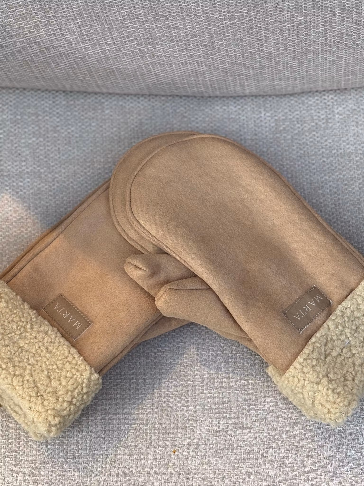 Vantar i naturfärg med teddy material invändigt