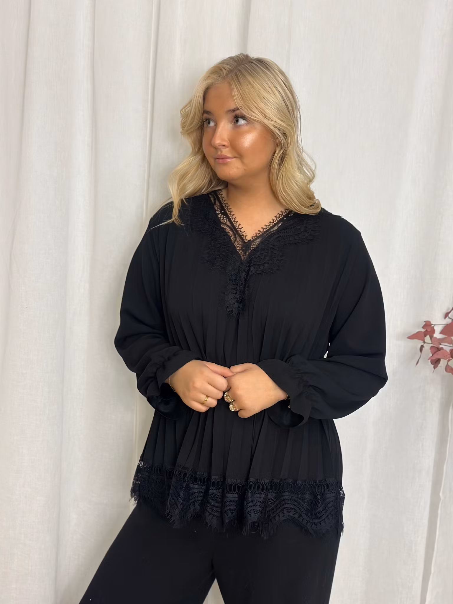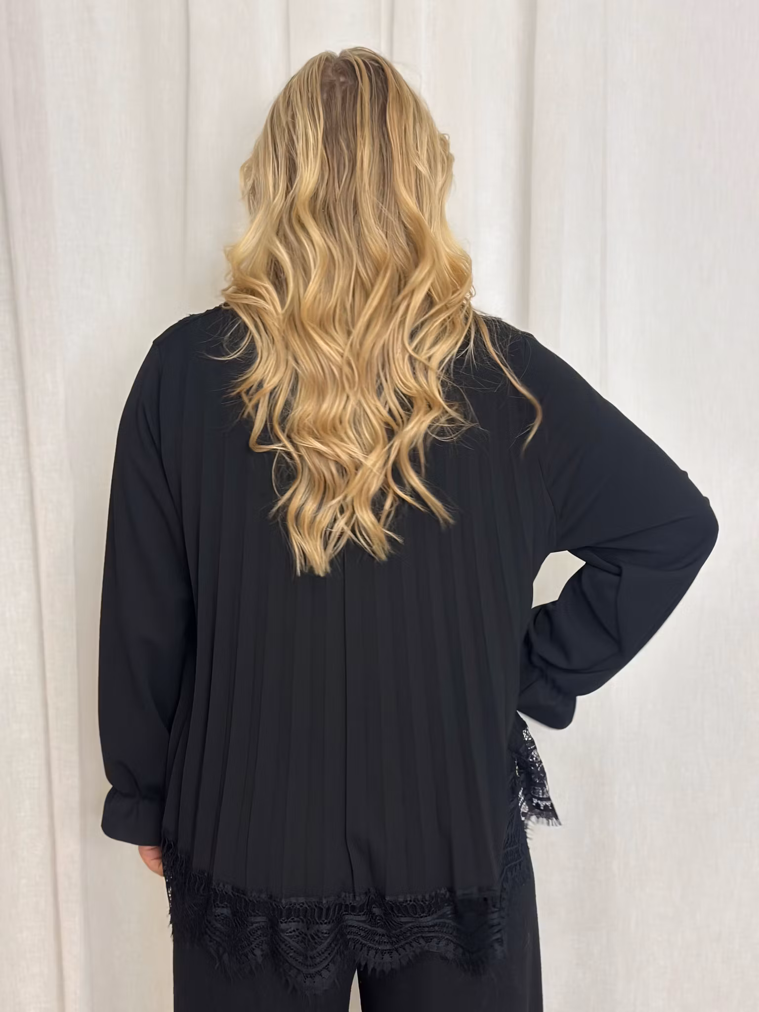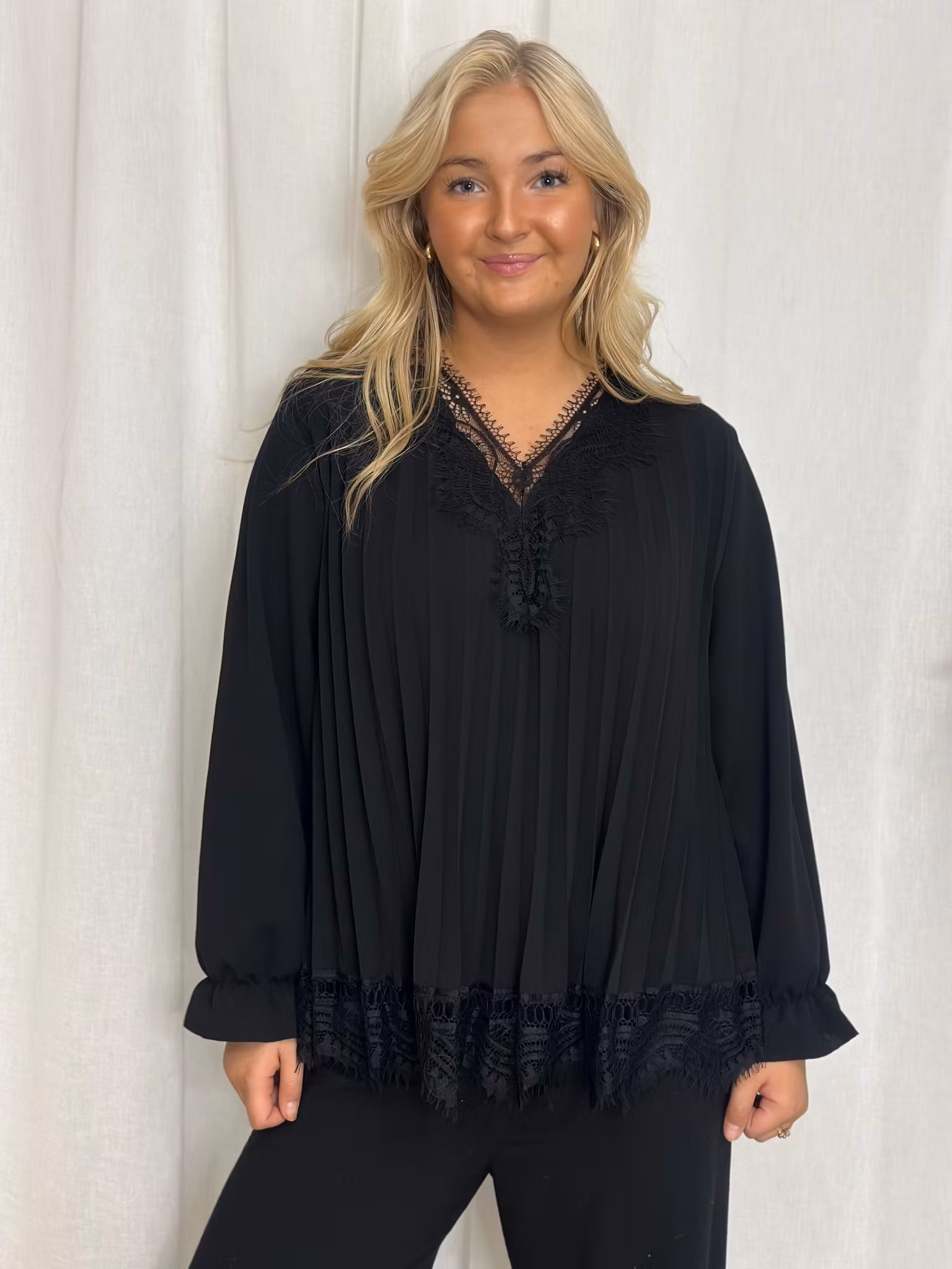 Superfin stretchig plisserad tunika med fin spets!