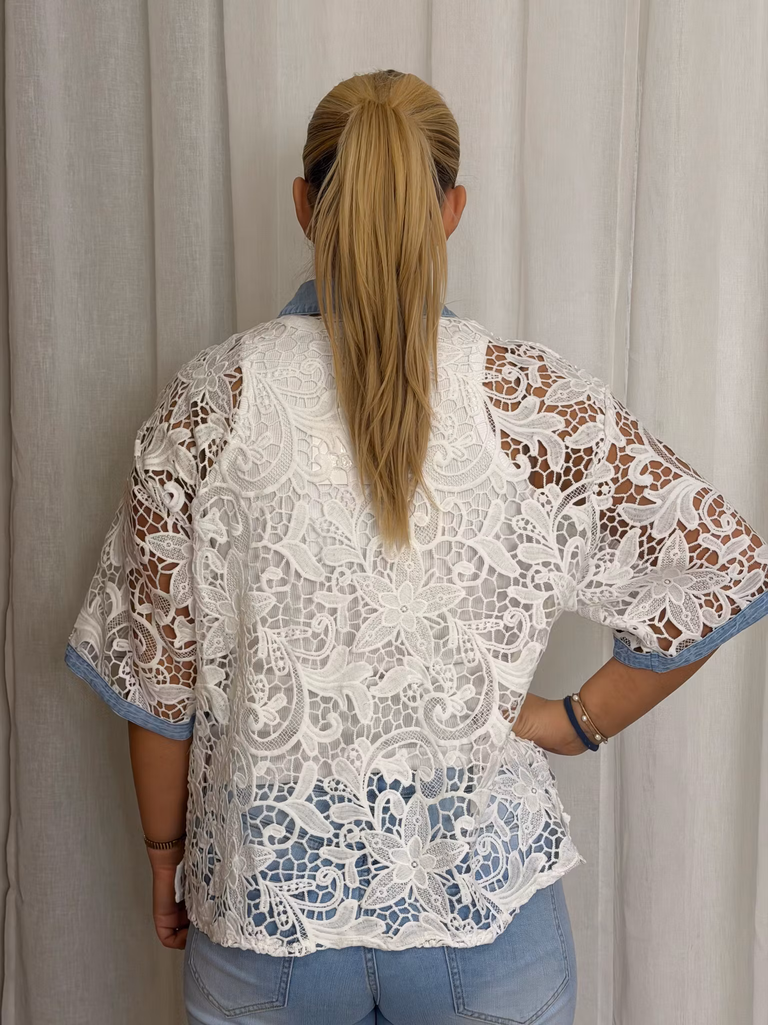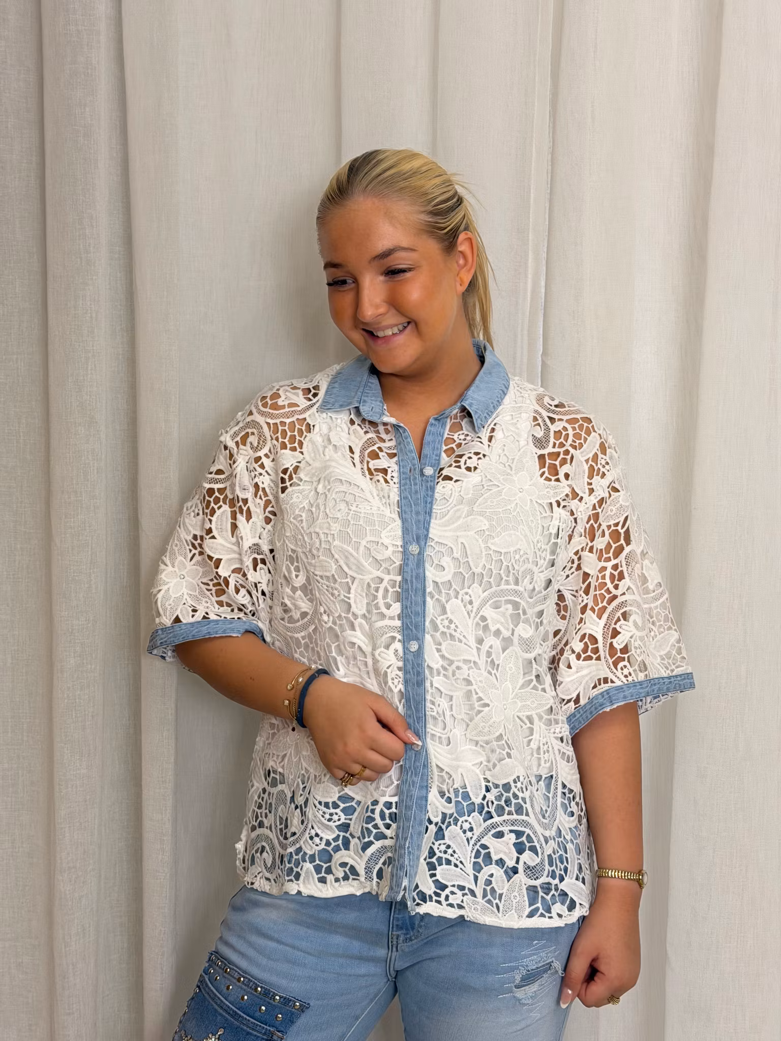 Spets skjorta med jeans detaljer
