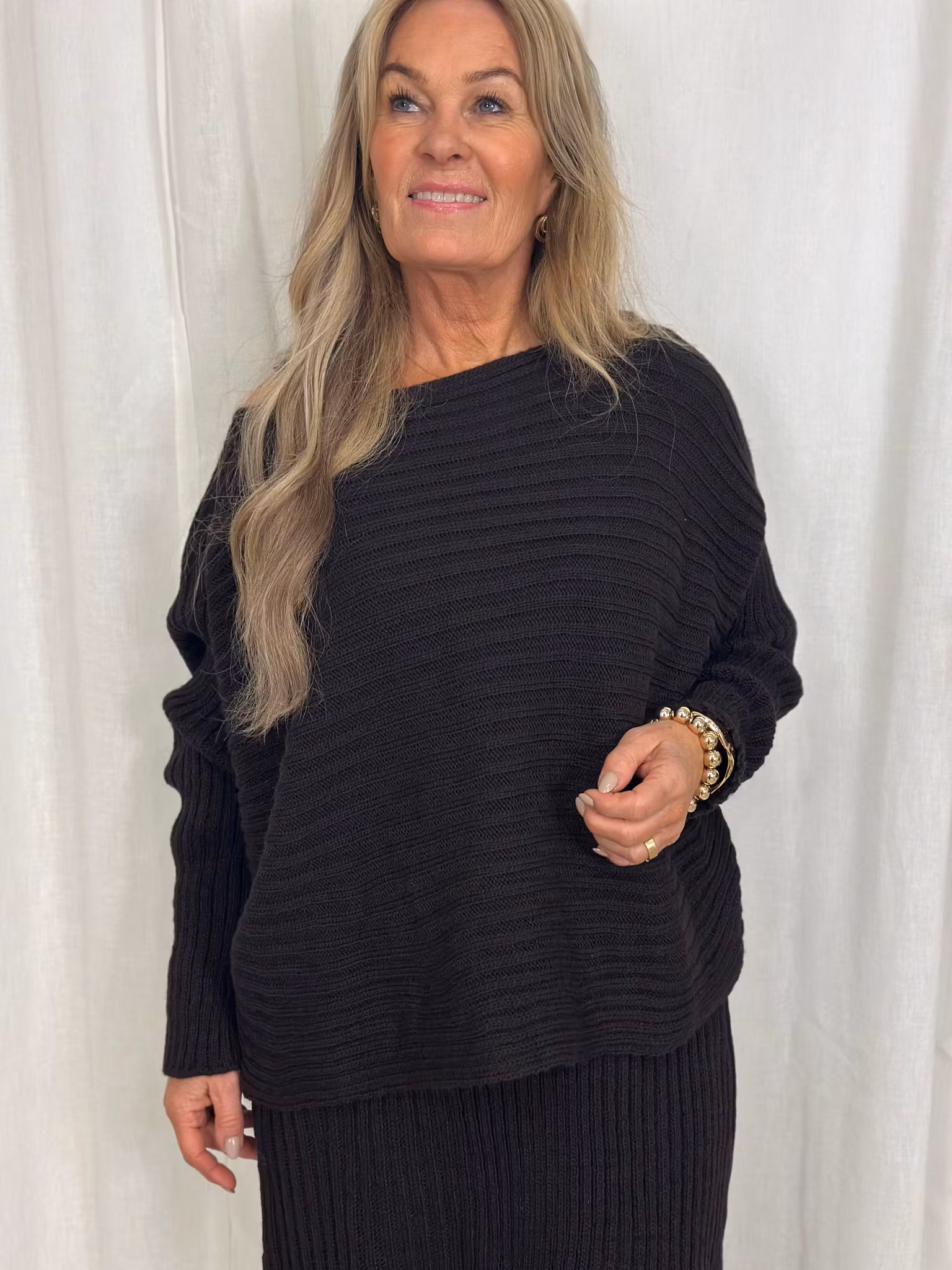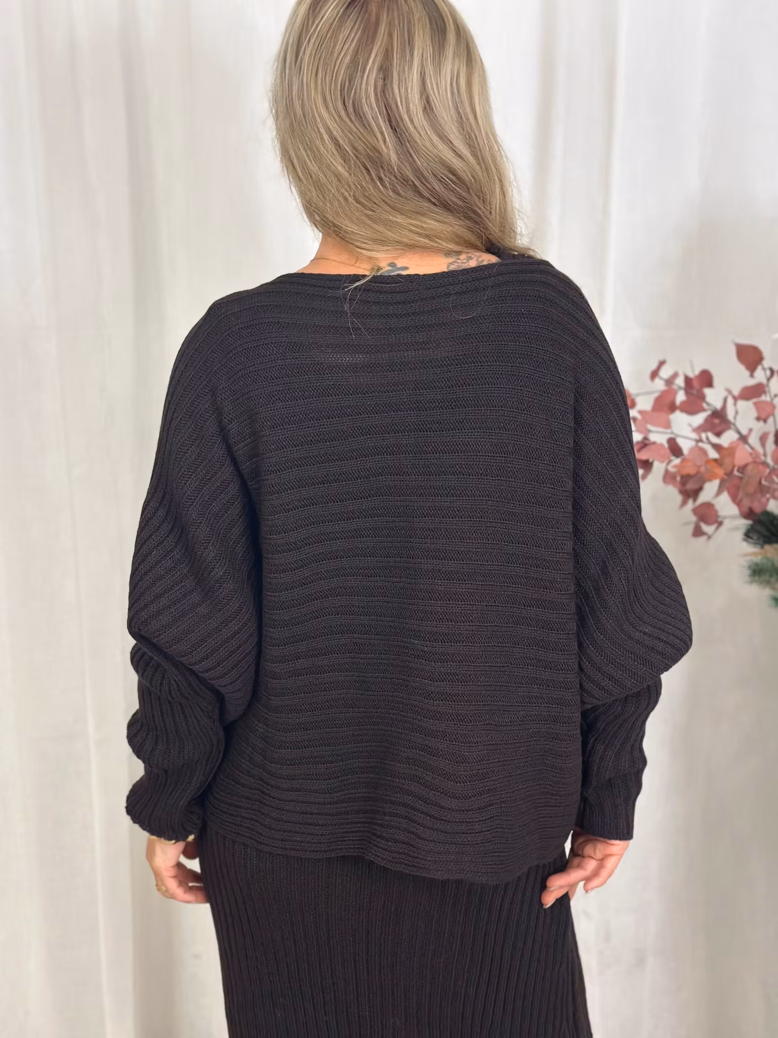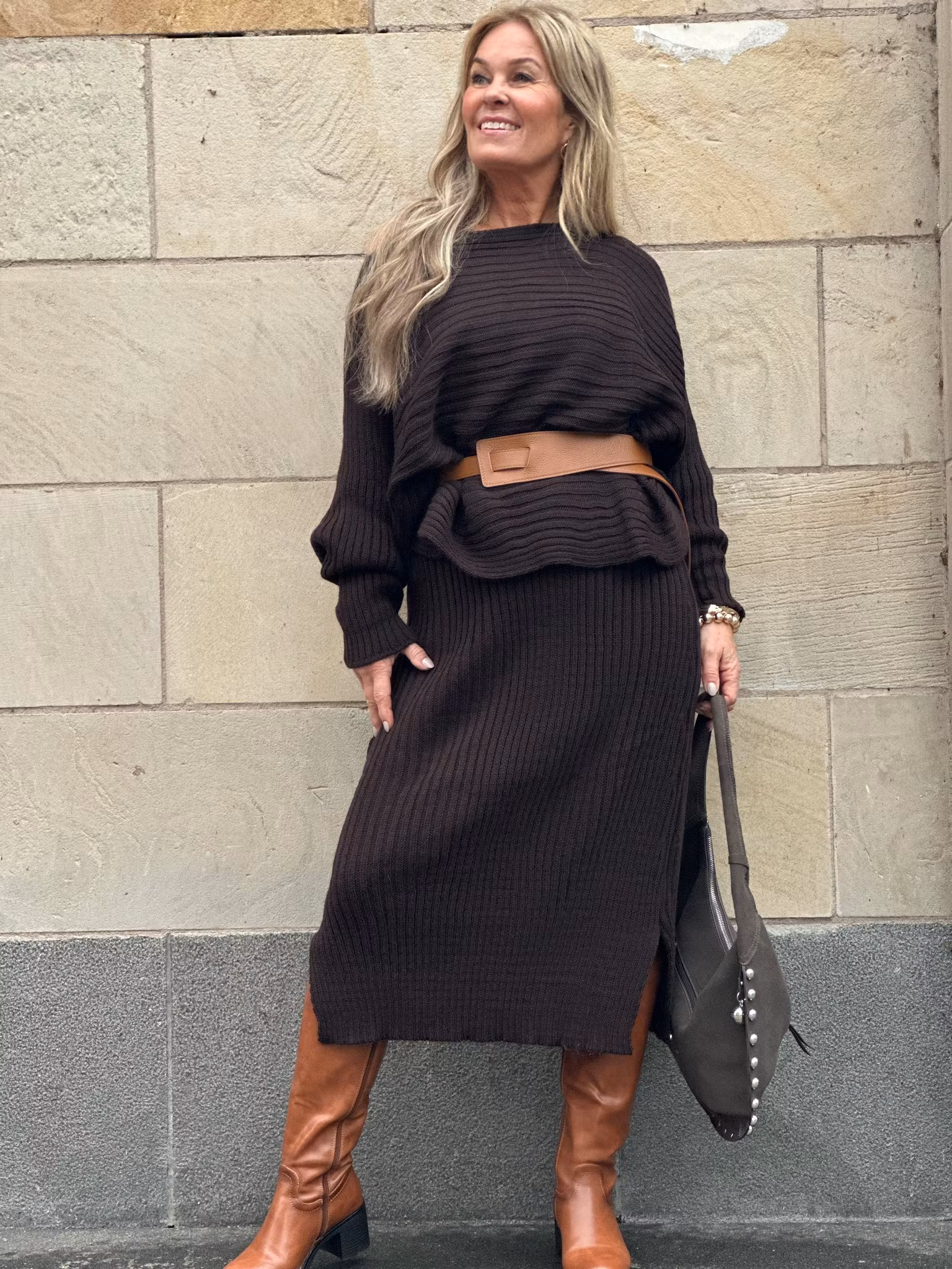 2 delat stickat set med tröja och klänning