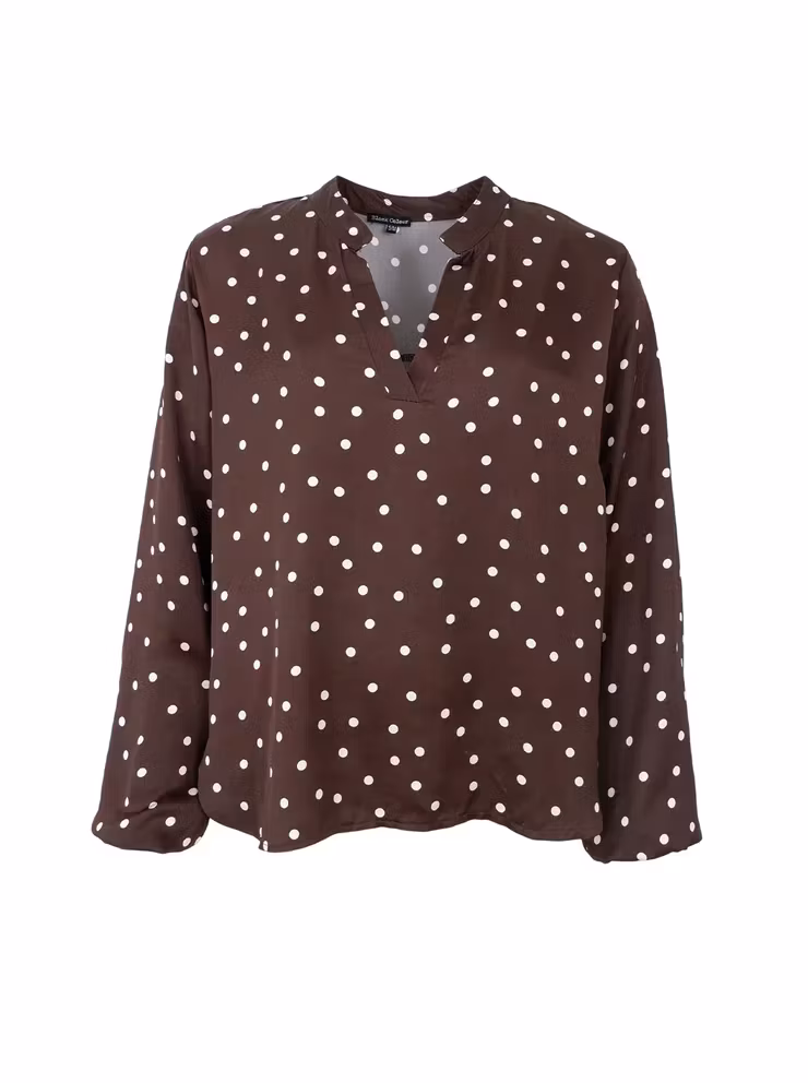 VALERY blus brun/vit prickig