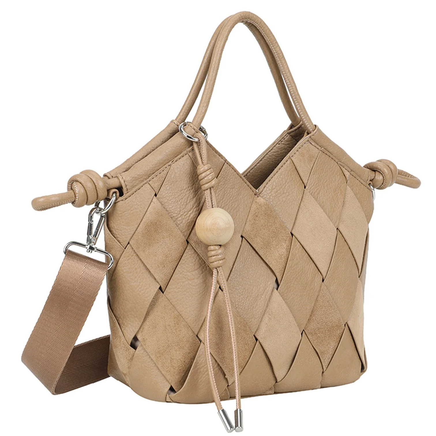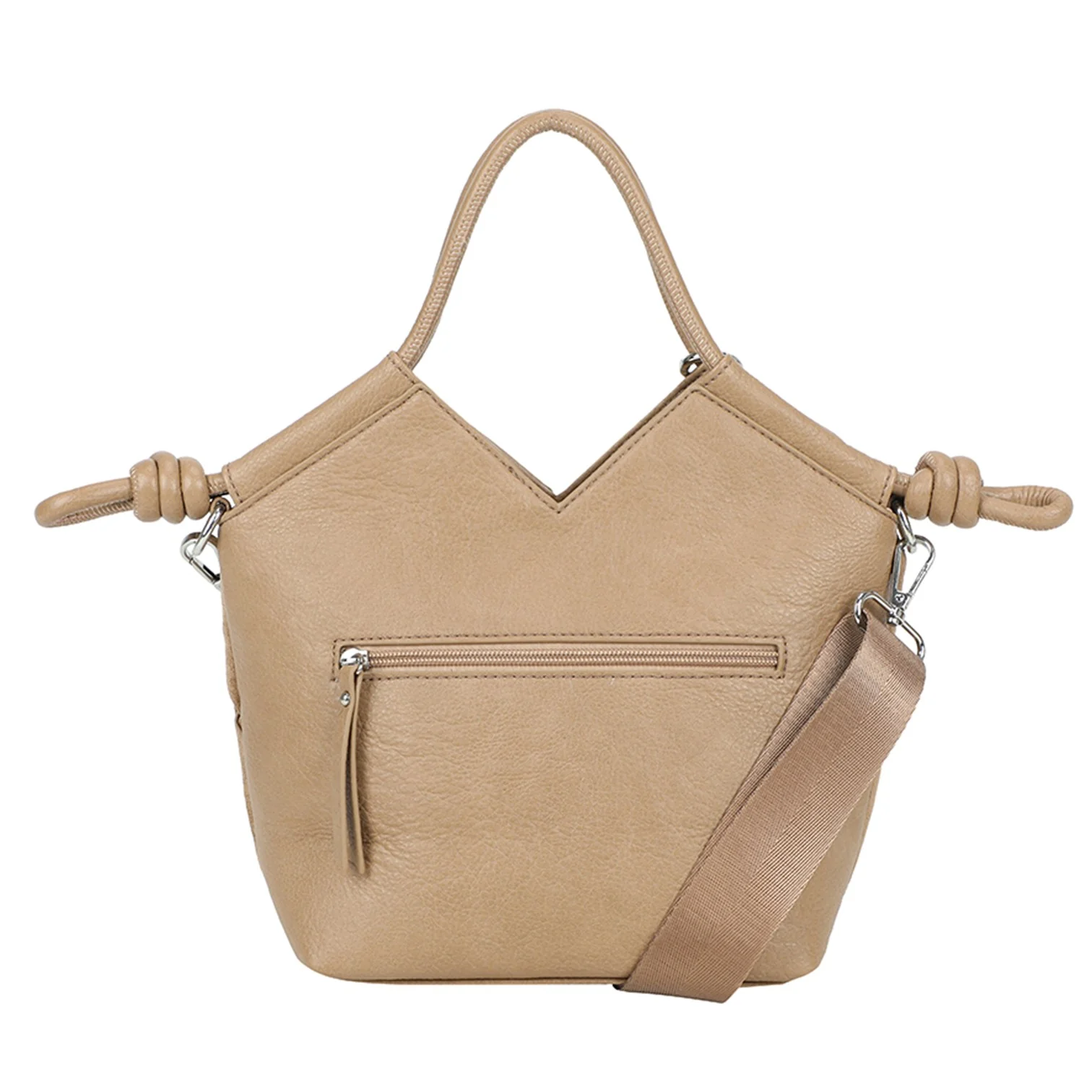 Väskan är tillverkad i högkvalitativt konstskinn med mjuk finish som påminner om äkta läder. Den dekorativa flätdetaljen framtill ger ett exklusivt uttryck, medan de silverfärgade metalldetaljerna förstärker det stilrena intrycket.