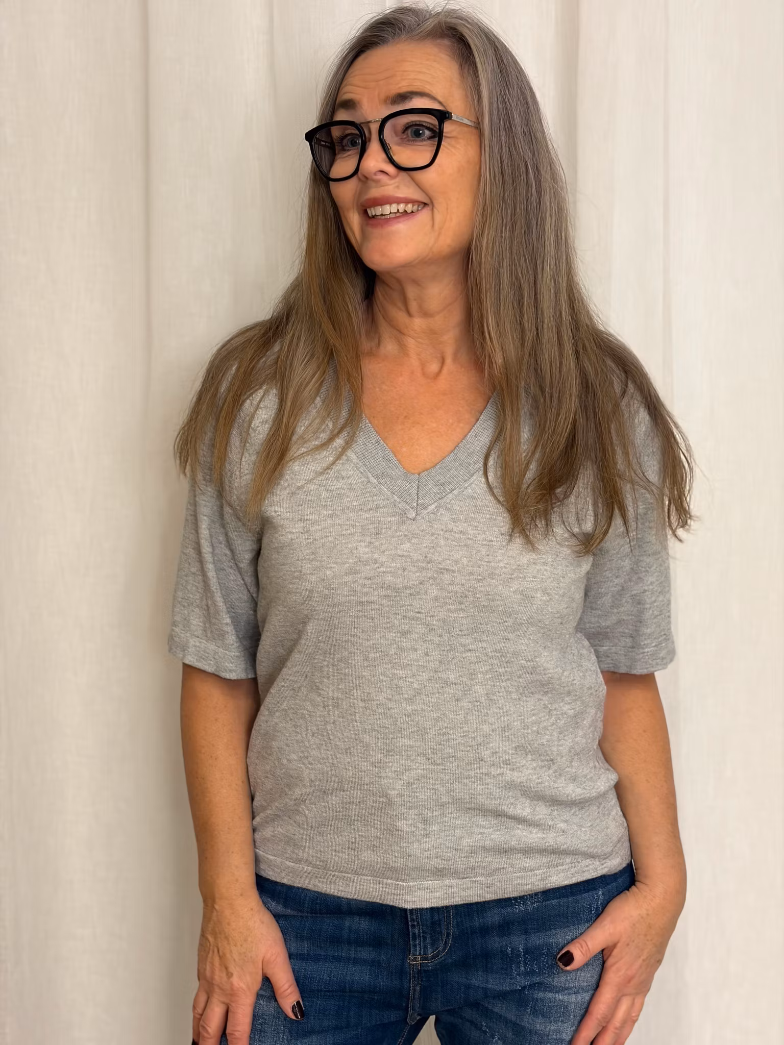 Grå Finstickad Top