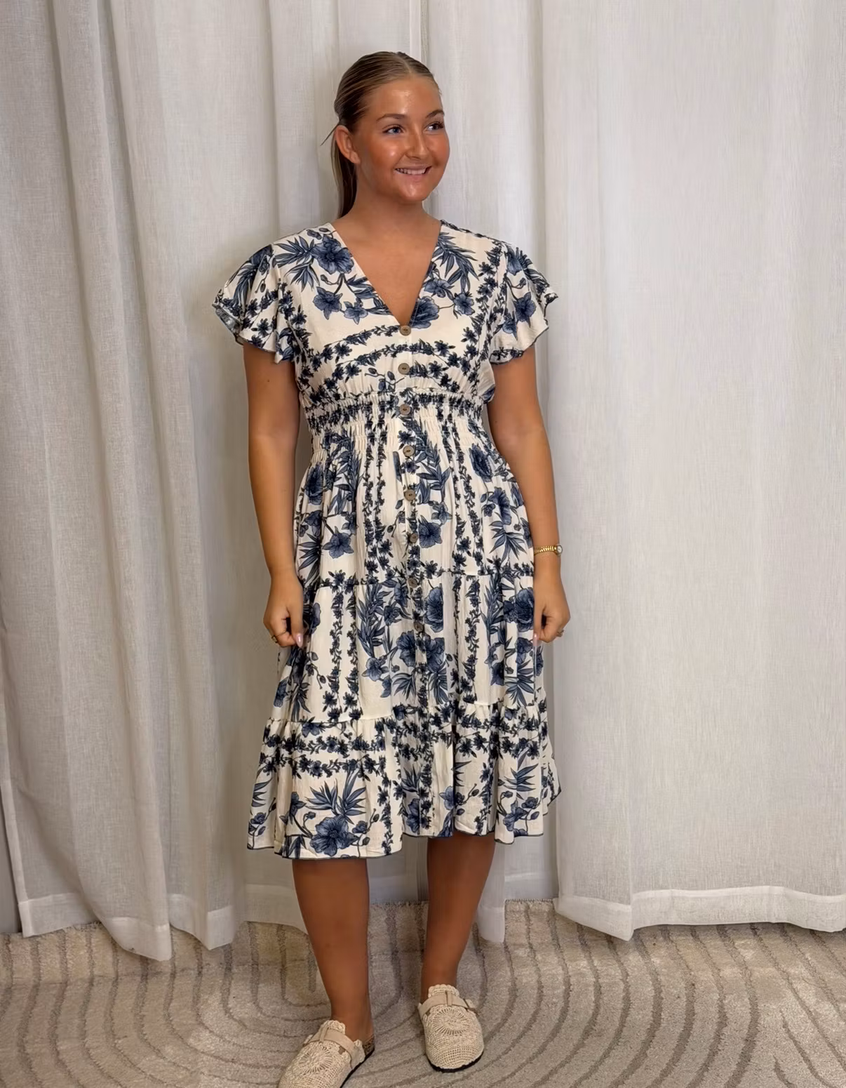 Superfin klänning med smock i midjan och fina knappar framtill!