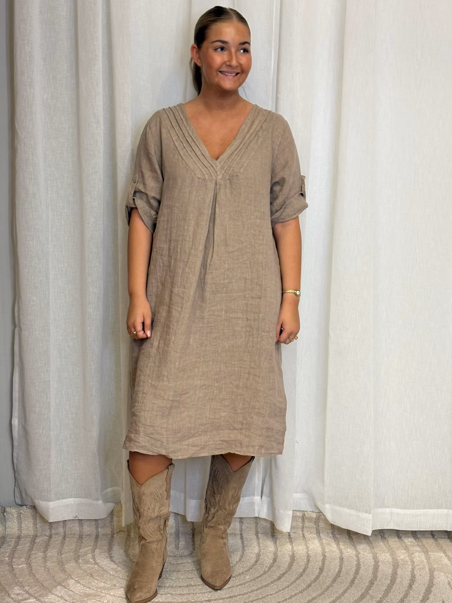 Linne klänning taupe wendy