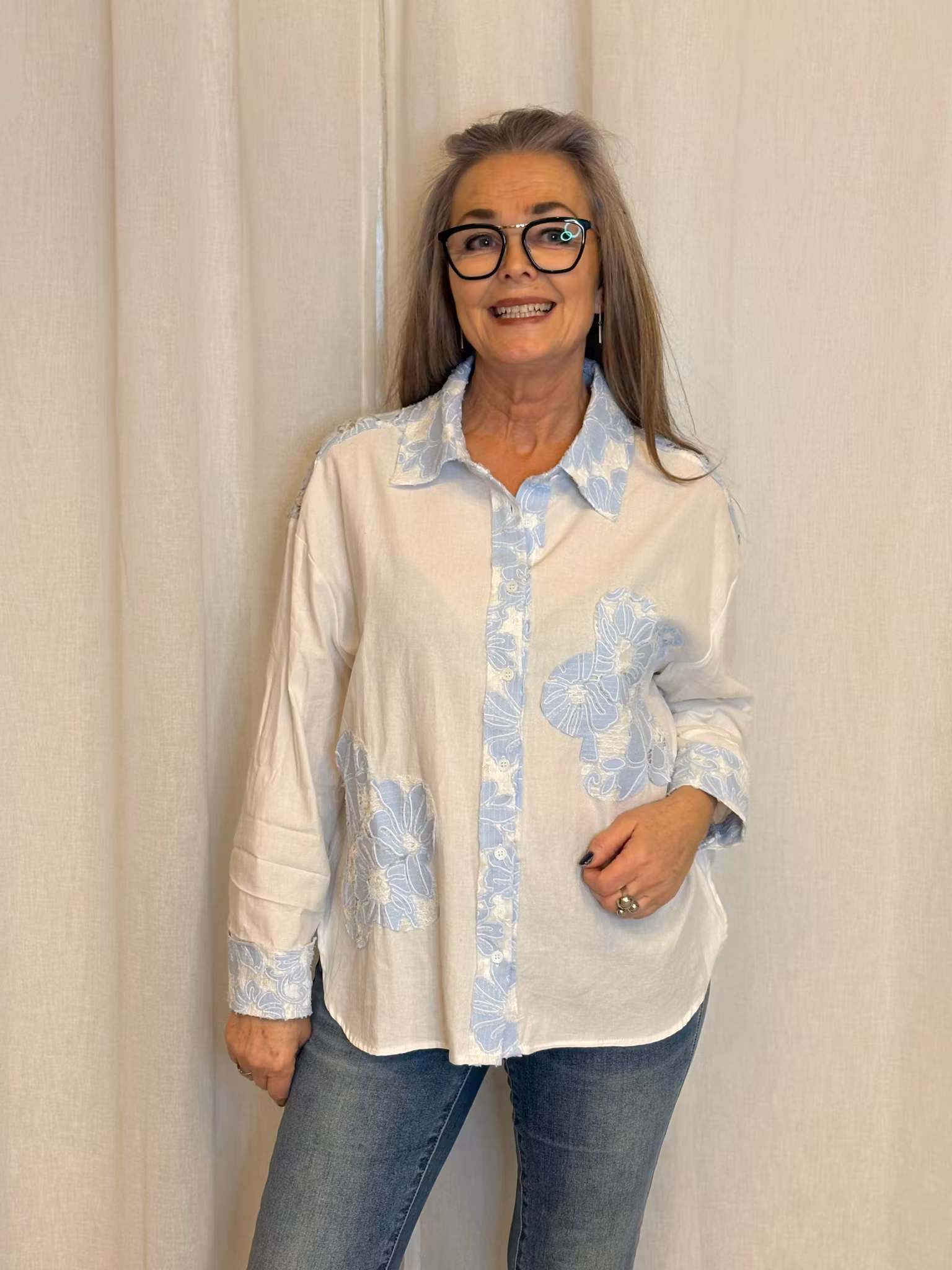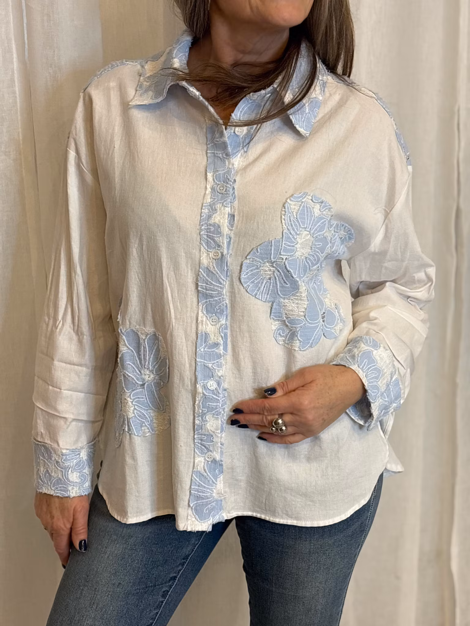 Vit Skjorta med blå detaljer