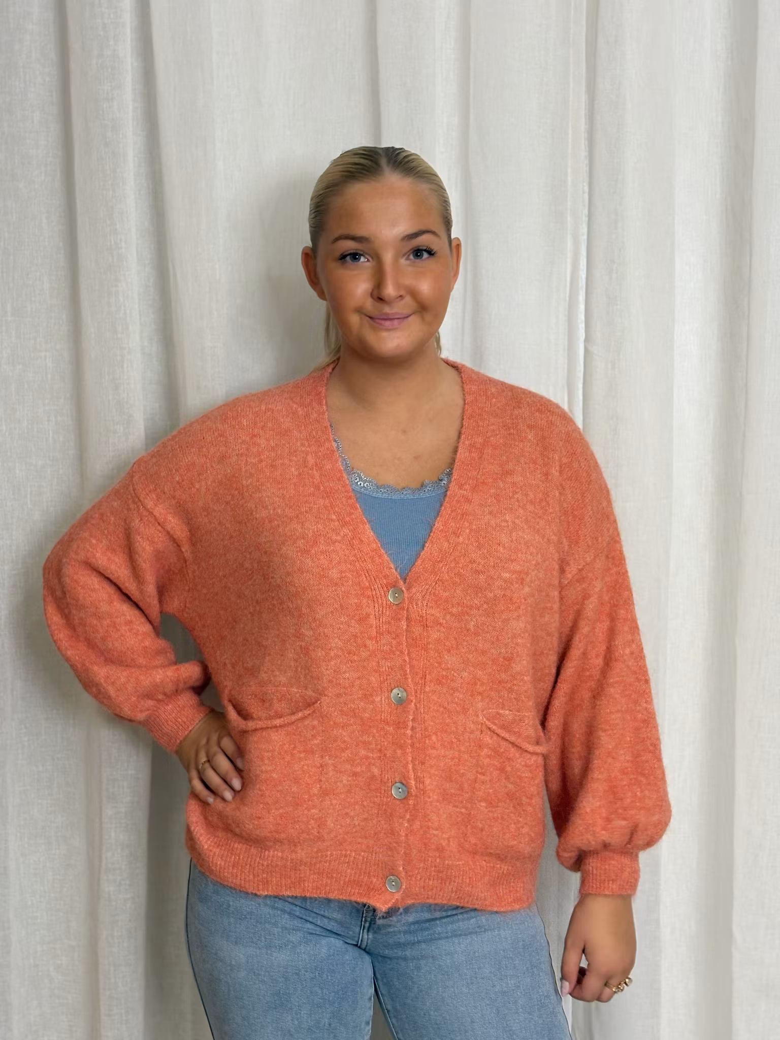Stickad kofta JENNIFER korall