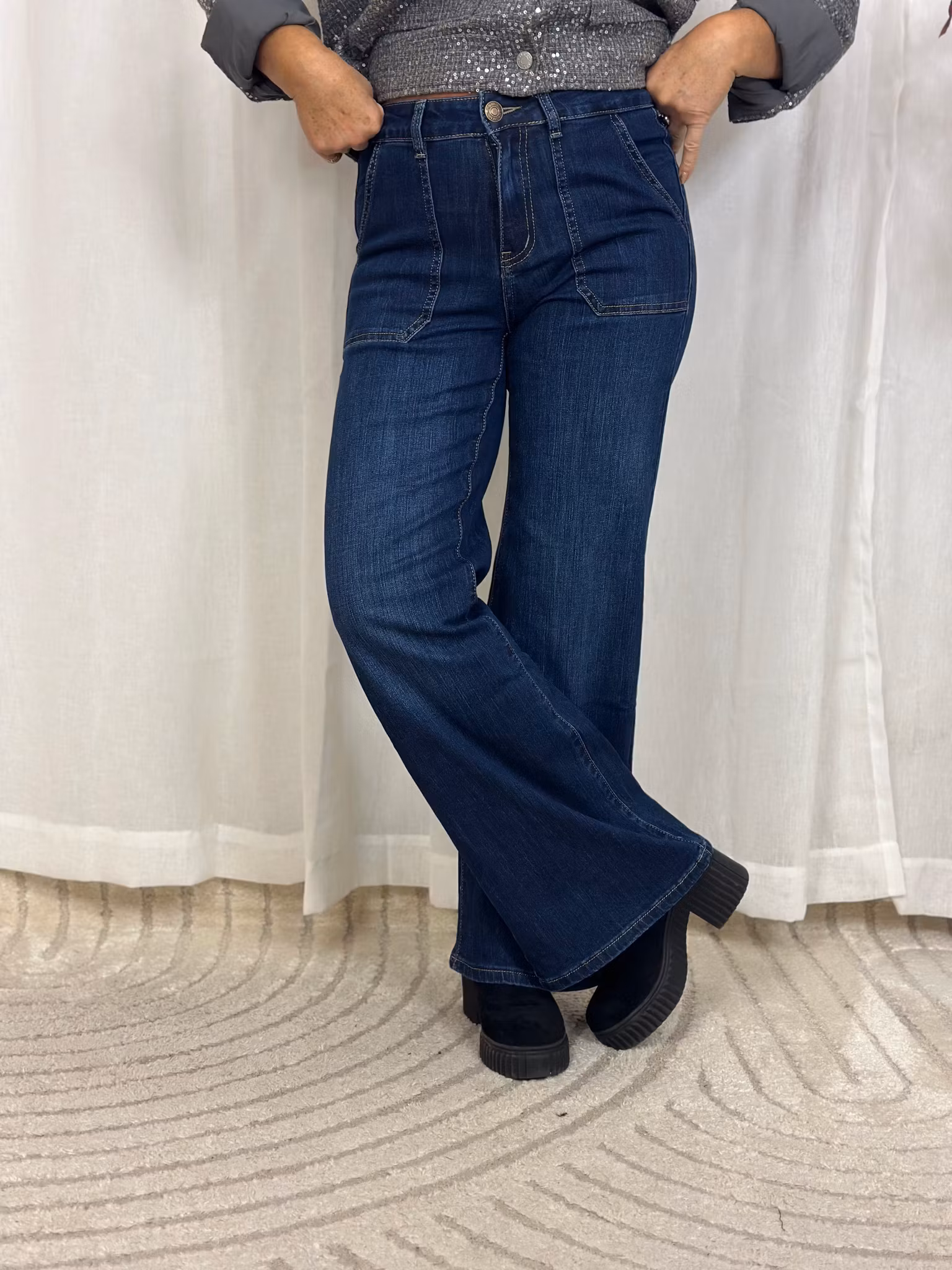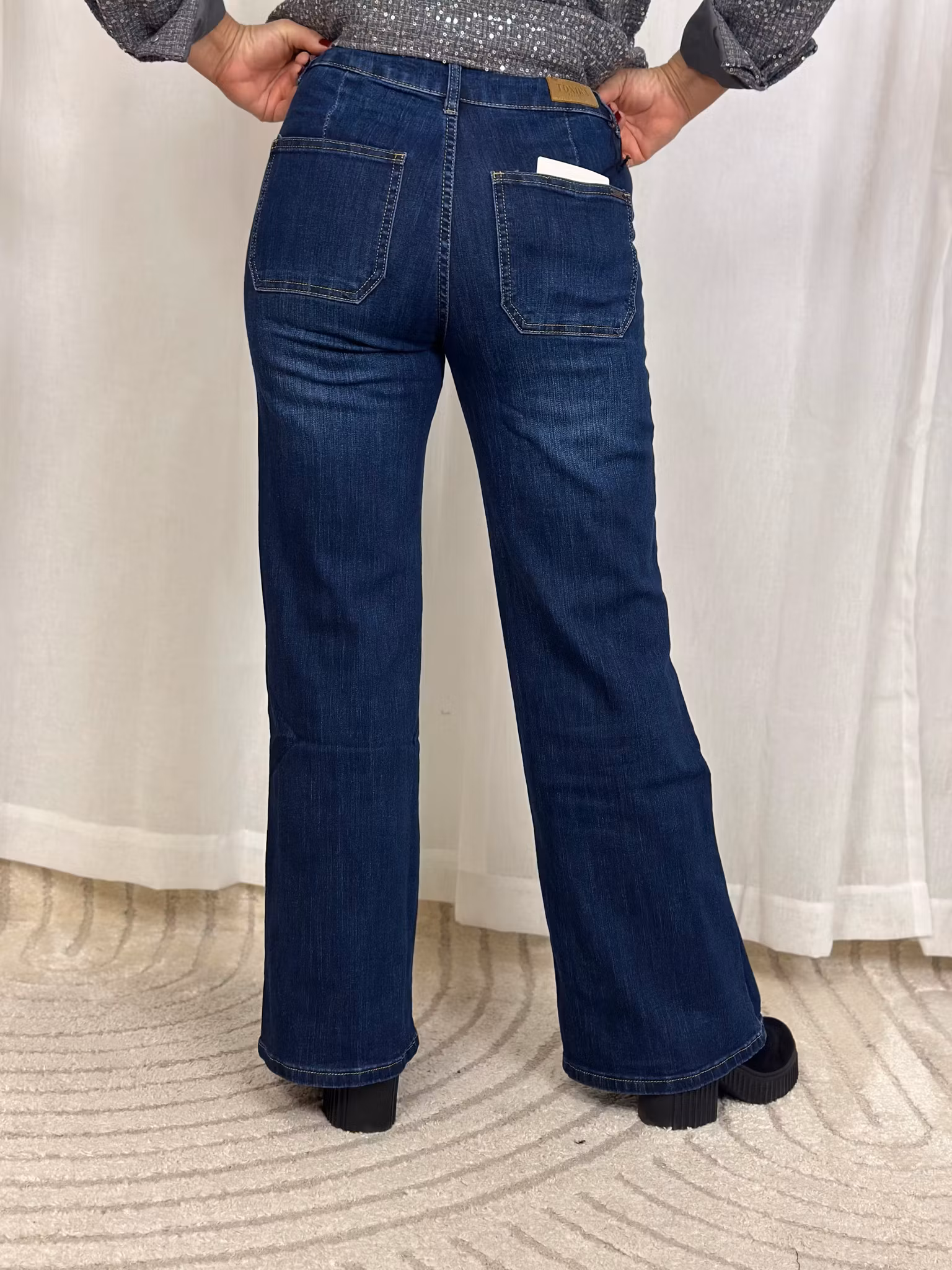 med rak vidd i benet. något rymlig modell